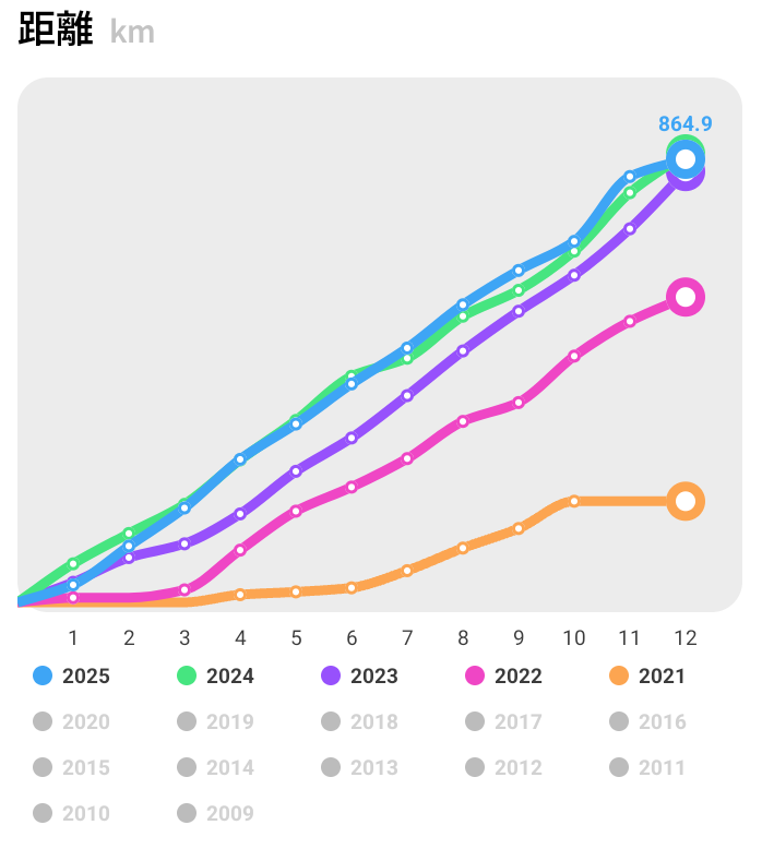 移動距離は875.3kmに達し、獲得標高は60671mという高い数字を記録しました。