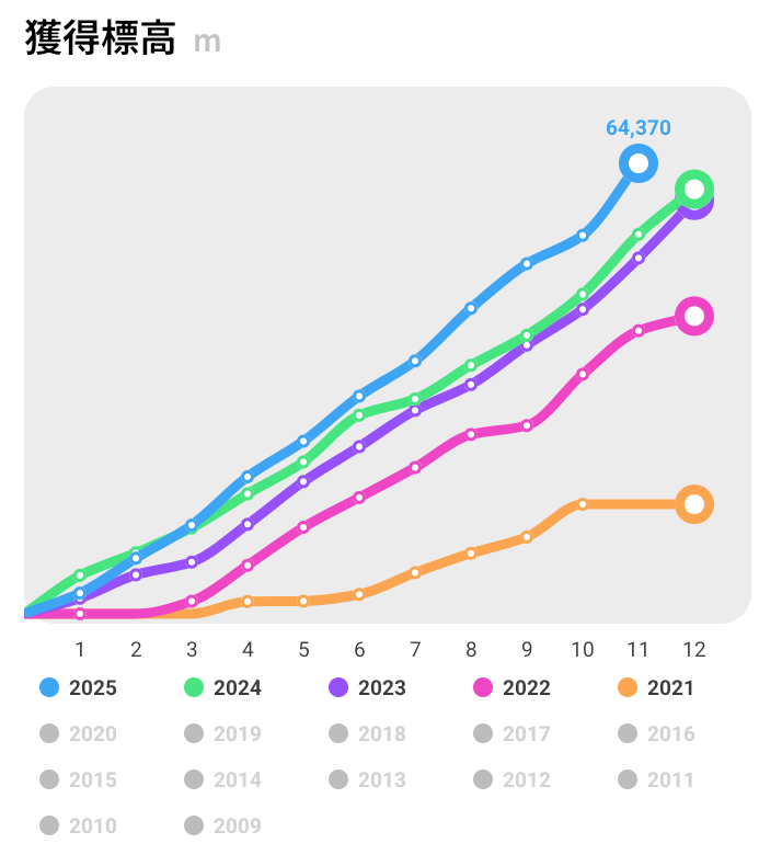 話は変わって、YAMAP で去年の山行の総括が AI で生成されていました。