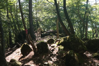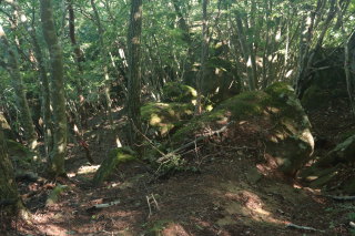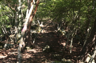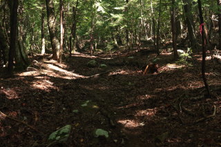 岩堂峠に戻ります。おおむね歩きやすい登山道でしたが、所々荒れていて、また倒木も多数ありました。 Canon EOS Kiss X7 EF-S24mm f/2.8 STM 24mm(38mm) ISO 400 F5.6 1/80s |