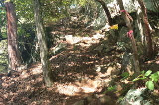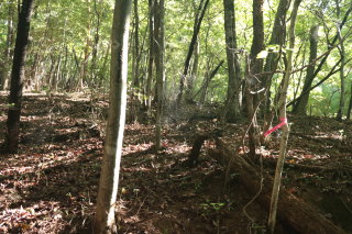 登山道らしき道は見当たりません。ピンクテープを頼りに登って行きます。 昨日の台風で水が大量に流れた跡はあるんですが...。 Canon EOS Kiss X7 EF-S24mm f/2.8 STM 24mm(38mm) ISO 1600 F5.6 1/80s |
