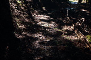 面倒な倒木がありました。右の山のほうに上って越えました。 Canon EOS Kiss X7 EF-S24mm f/2.8 STM 24mm(38mm) ISO 500 F5.6 1/80s |
