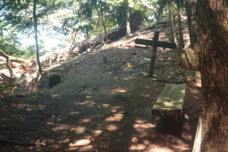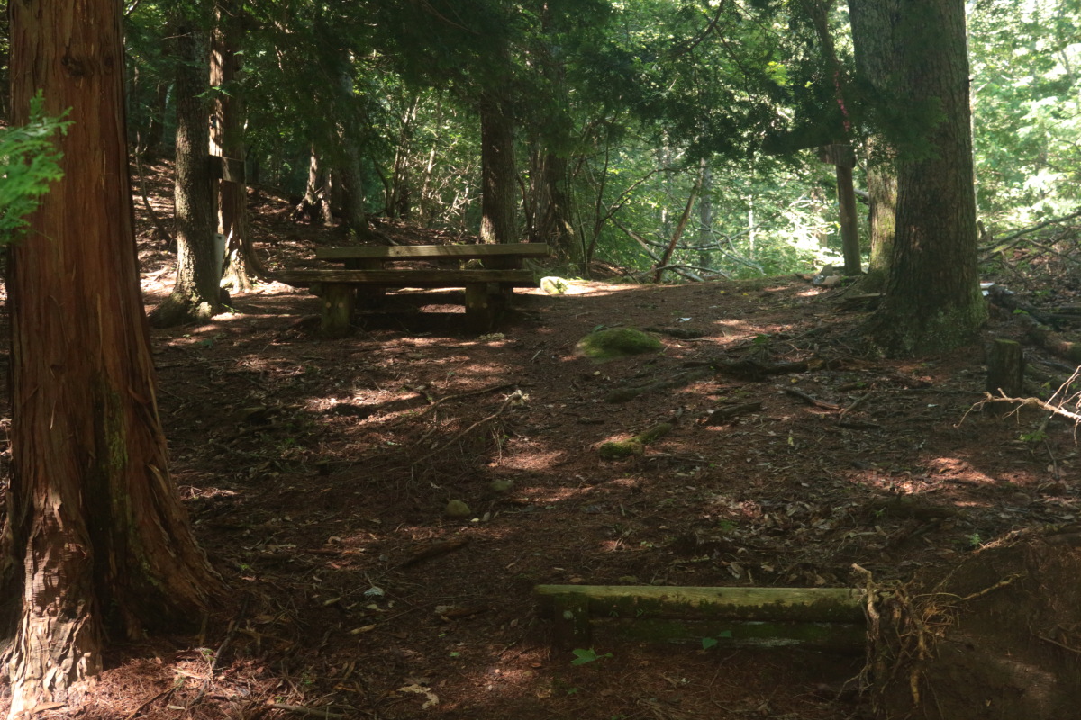 岩堂峠(912m)到着(9:52)。ベンチが見えたときはホッとしました。 道を見失った時の人工物は、本当にありがたいです。 Canon EOS Kiss X7 EF-S24mm f/2.8 STM 24mm(38mm) ISO 1600 F5.6 1/80s |