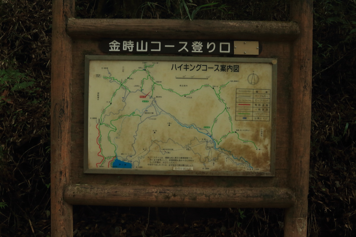 再び笹林になります。分岐を越え、まっすぐに進みます(9:37)。 道標には地図が付いていました。 Canon EOS Kiss X7 EF-S24mm f/2.8 STM 24mm(38mm) ISO 250 F5.6 1/80s |
