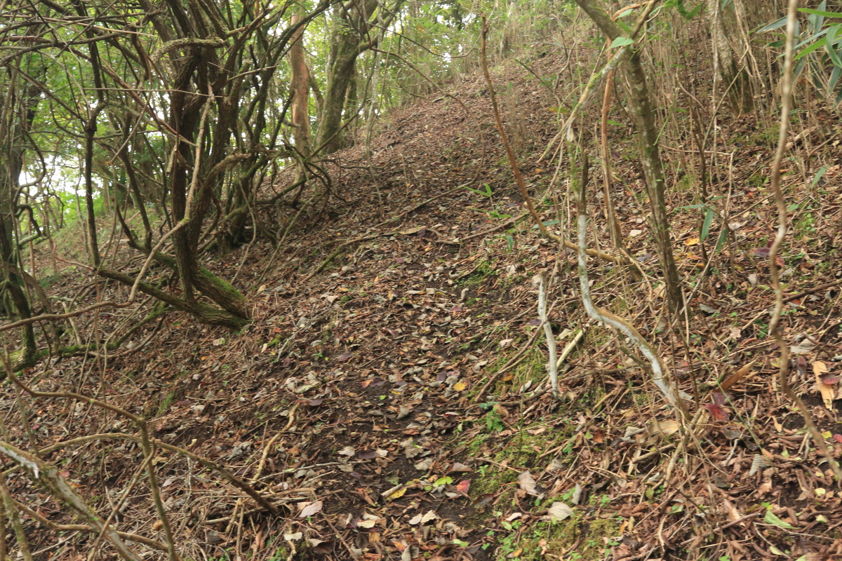 途中で柔らかい斜面と固い藪に阻まれました。 辺りにルートを散策しましたが、見つけることが出来なかったので、潔く諦めました。 Canon EOS Kiss X7 EF-S24mm f/2.8 STM 24mm(38mm) ISO 1600 F5.6 1/80s |