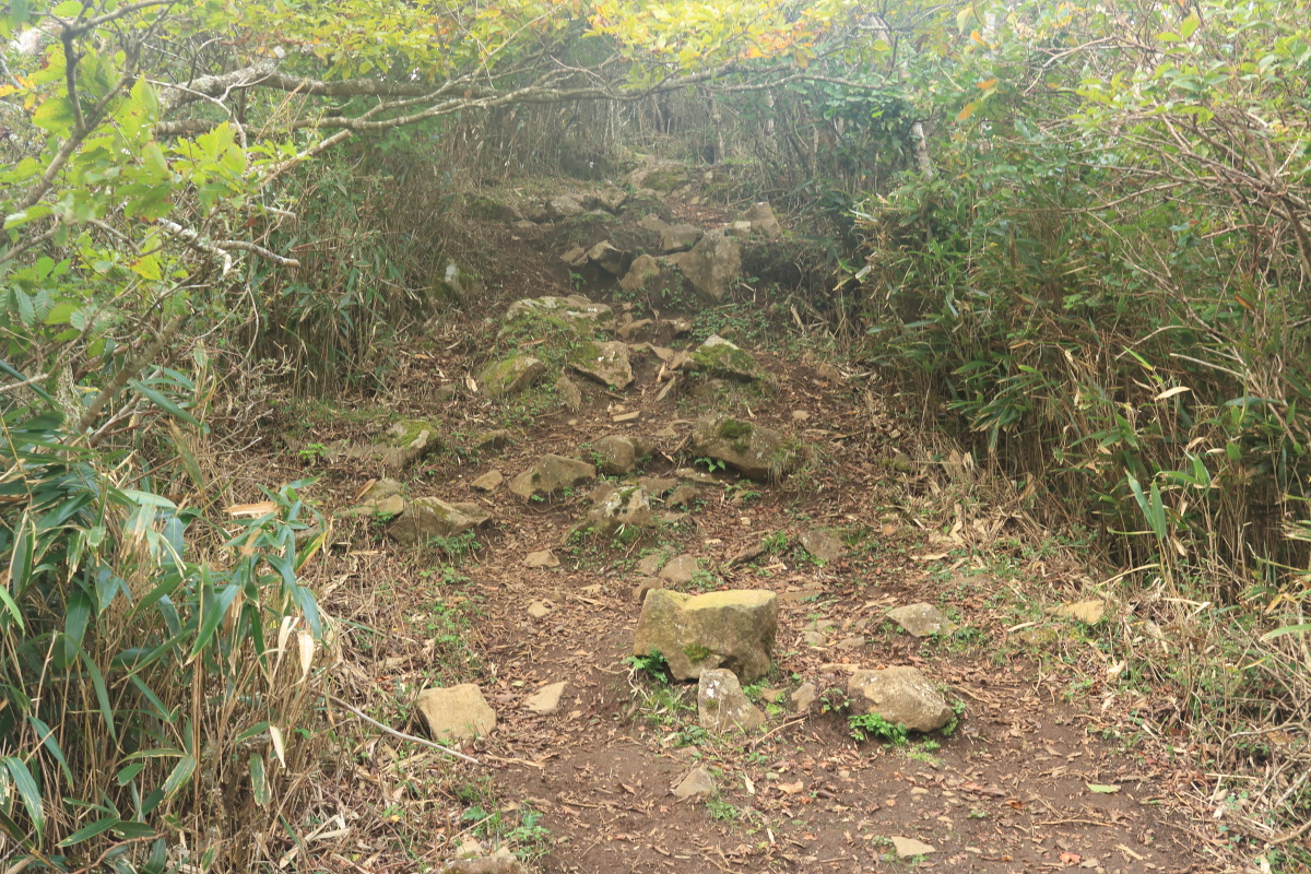 途中から石ゴロゴロの急登に変わります。200mぐらい一気に上ります。 Canon EOS Kiss X7 EF-S24mm f/2.8 STM 24mm(38mm) ISO 1000 F5.6 1/80s |