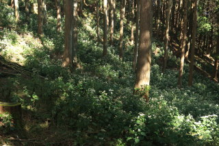 途中からヒノキ林になります。 Canon EOS Kiss X7 EF-S24mm f/2.8 STM 24mm(38mm) ISO 1600 F5.6 1/80s |