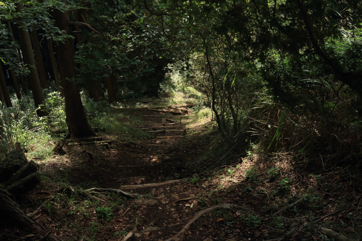 塔ノ峰からはちょっと荒れた感じの下り坂になります。 Canon EOS Kiss X7 EF-S24mm f/2.8 STM 24mm(38mm) ISO 1600 F5.6 1/80s |