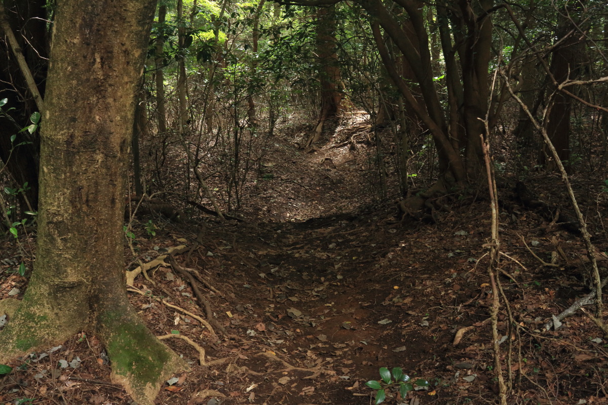 笹の切通しの道になります。ここで右に入ります。 Canon EOS Kiss X7 EF-S24mm f/2.8 STM 24mm(38mm) ISO 100 F5.6 1/125s |