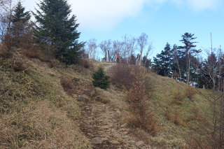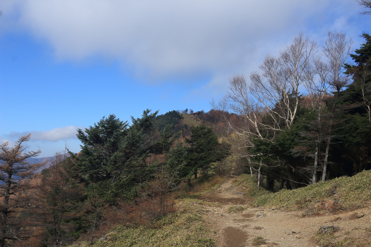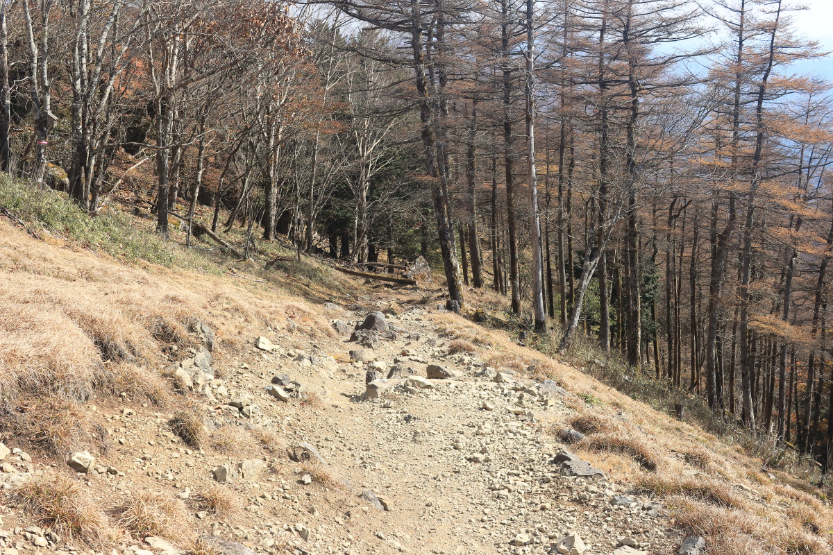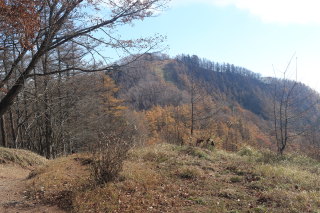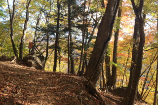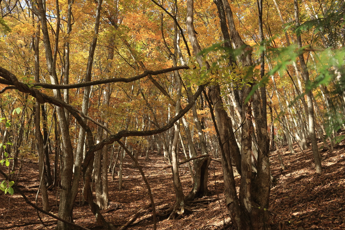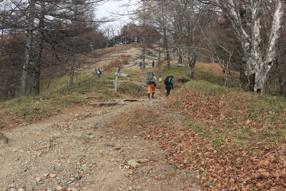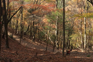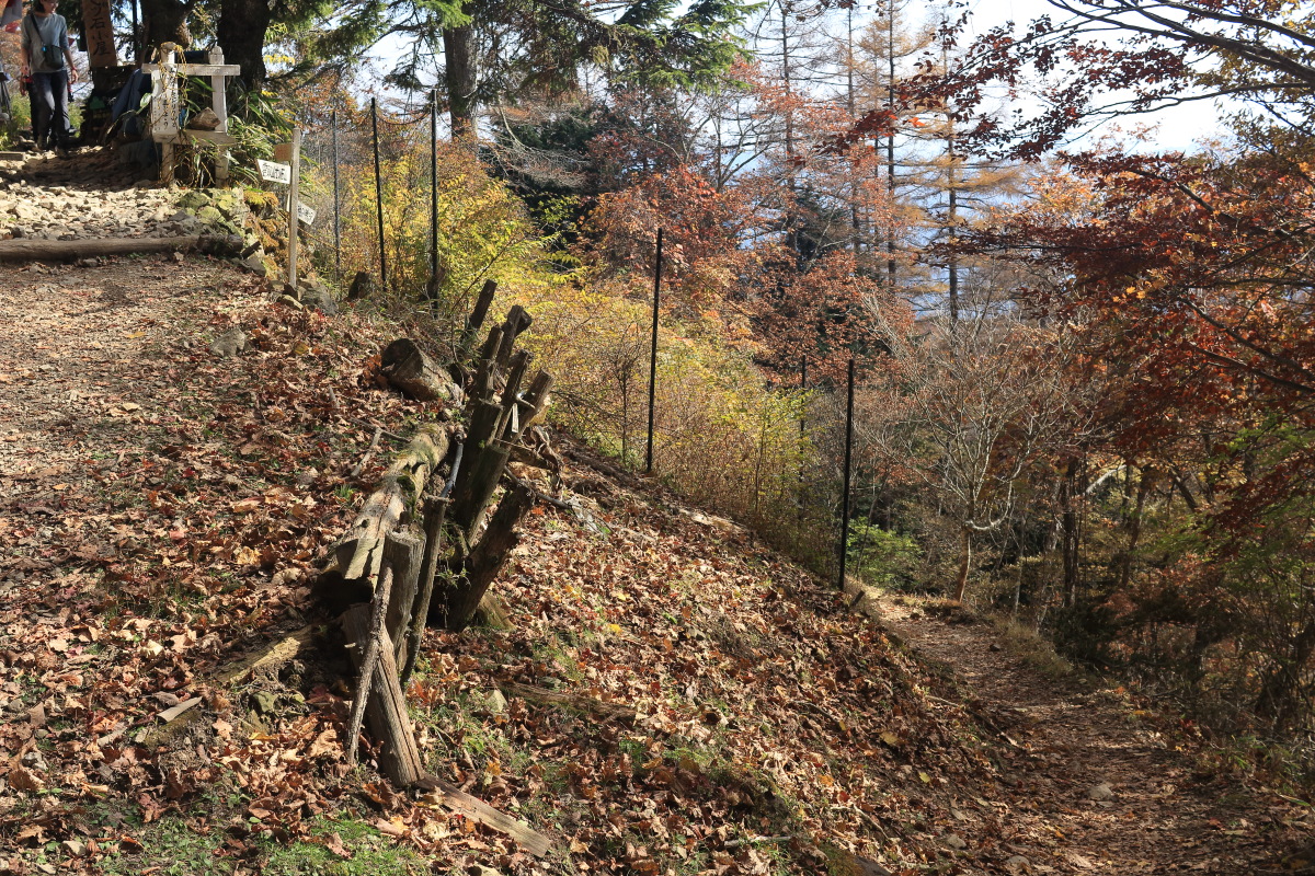 急こう配の道をどんどん登ります。 ここまで来ると、紅葉はほぼ終わっています。 Canon EOS Kiss X7 EF-S24mm f/2.8 STM 24mm(38mm) ISO 100 F7.1 1/200s |
