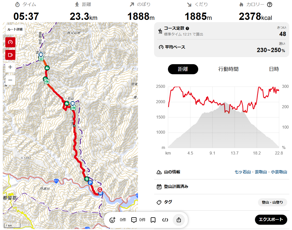 YAMAPのデータです。 Canon EOS Kiss X7 EF-S24mm f/2.8 STM 24mm(38mm) ISO 100 F5.6 1/125s |