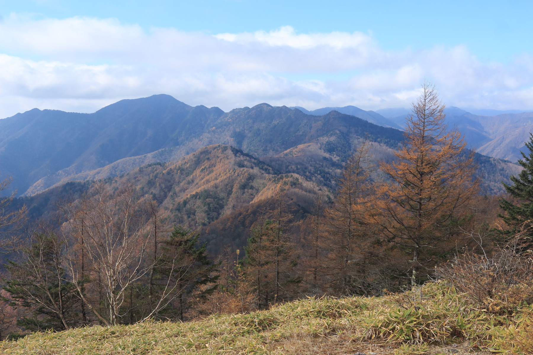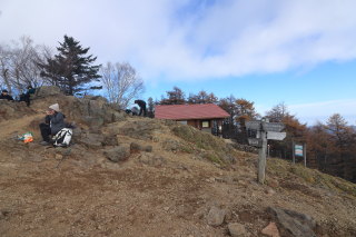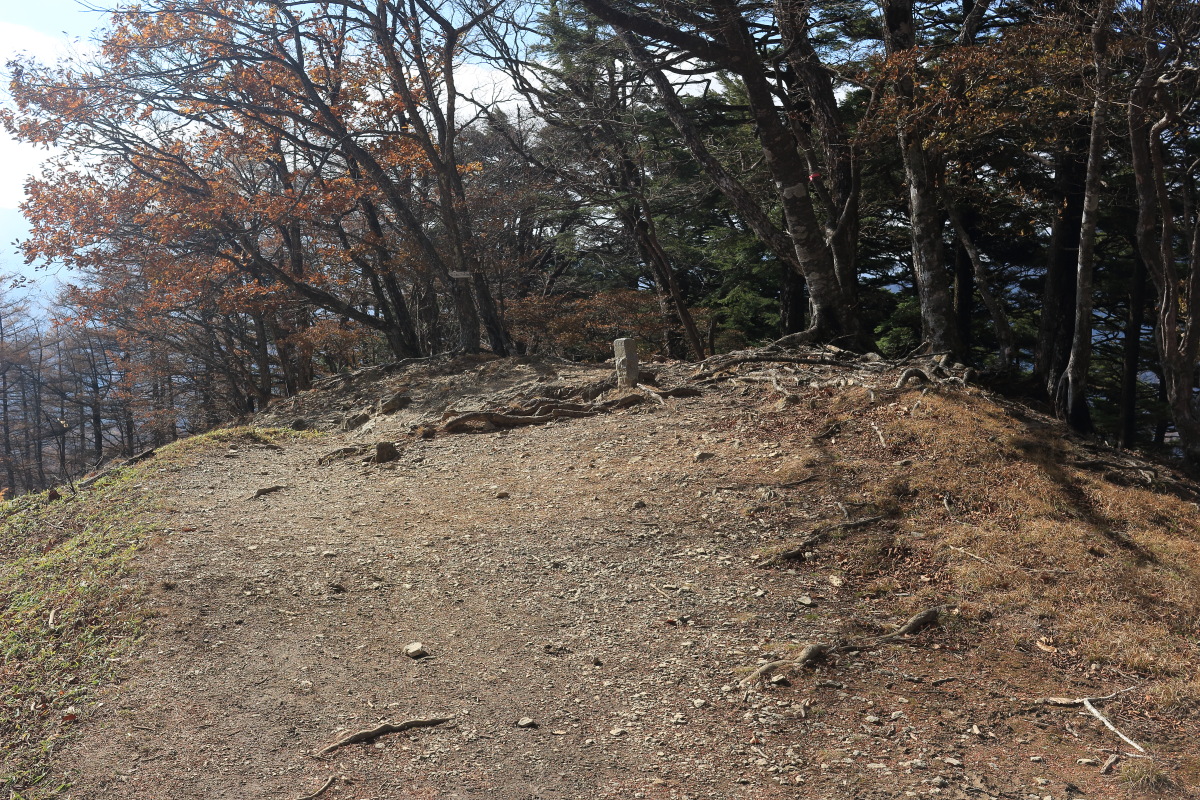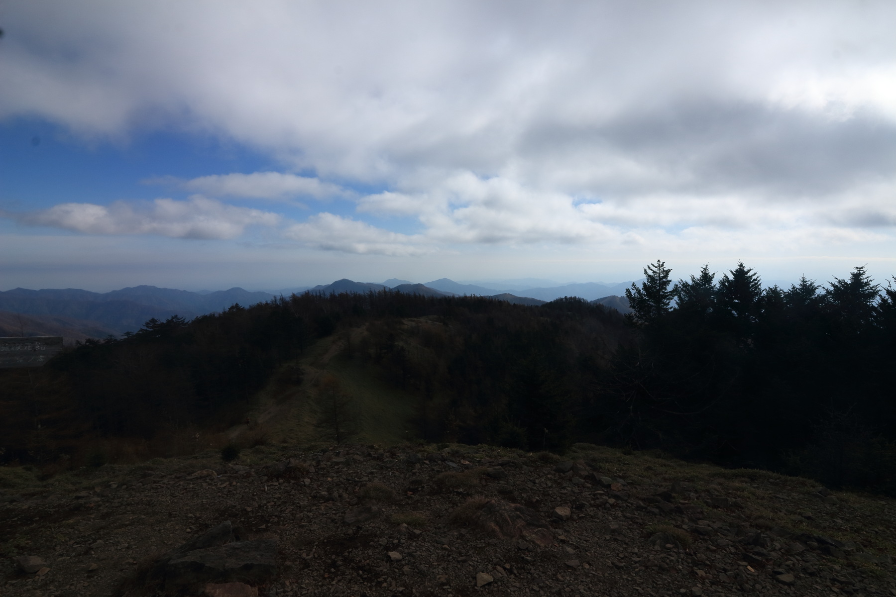 東京都の山頂標付近(2,017m)に登頂(11:00)。 Canon EOS Kiss X7 EF-S24mm f/2.8 STM 24mm(38mm) ISO 100 F7.1 1/250s |