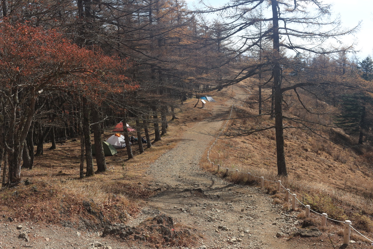 五十人平野営場には、いくつかのテントが張られていました。 明日は雨予報ですが、昨日時点での予約情報は、空きは3張だけでした。 ちなみに来週(11月15日)は空きなし。 Canon EOS Kiss X7 EF-S24mm f/2.8 STM 24mm(38mm) ISO 100 F8.0 1/250s |
