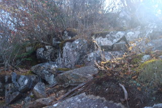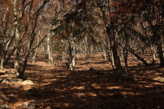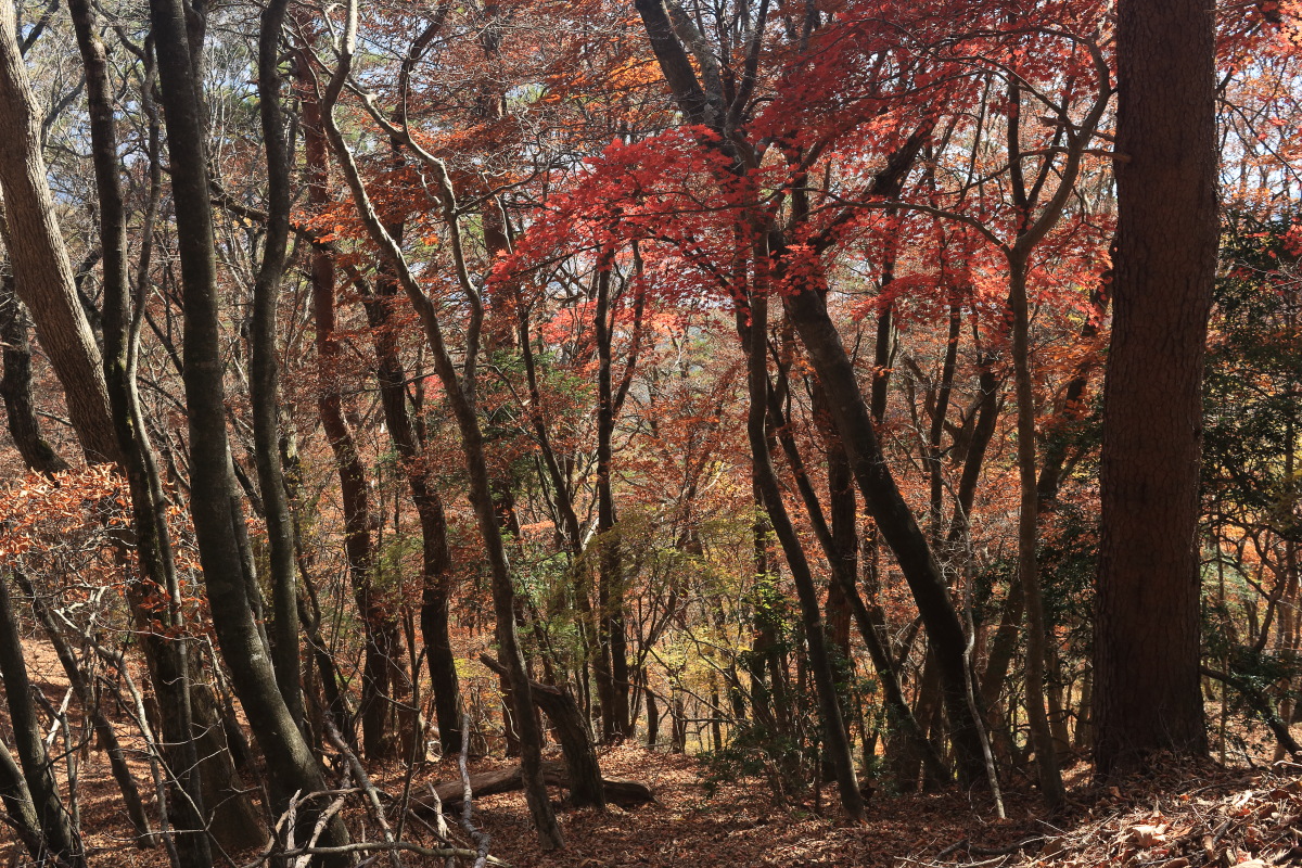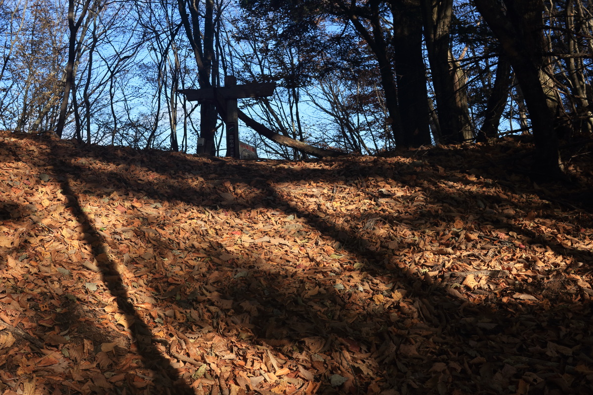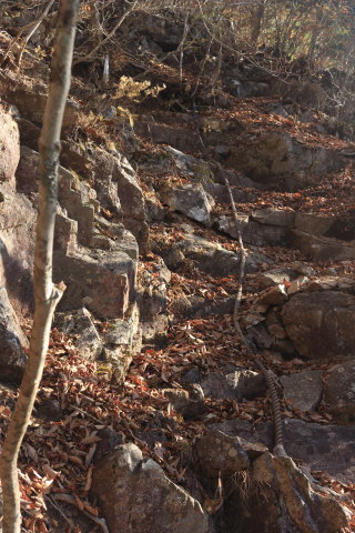 時々ロープも出てきます。枯葉が良く滑りますので、念のためロープを握りつつ登ります。 Canon EOS Kiss X7 EF-S24mm f/2.8 STM 24mm(38mm) ISO 100 F5.0 1/100s |