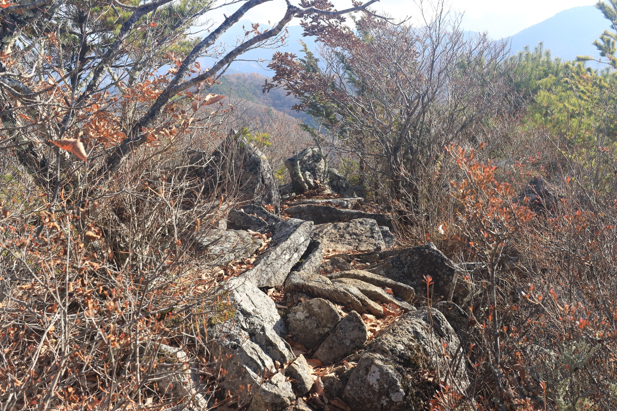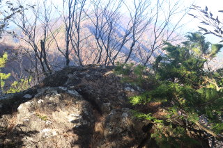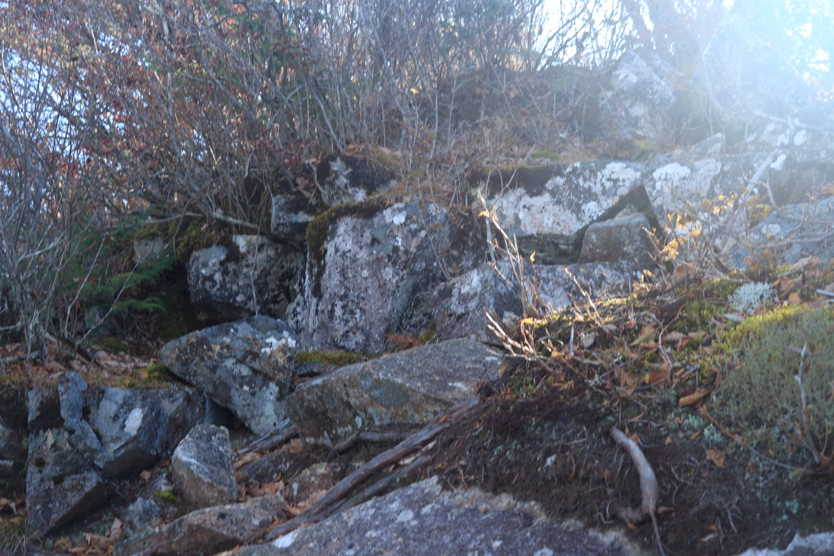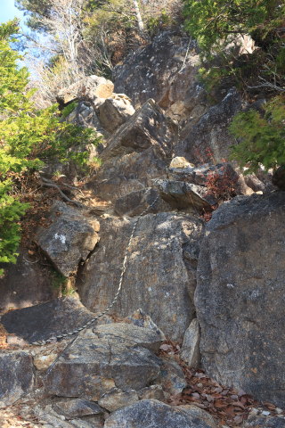 登り始めるとすぐに岩場になります。山頂までほぼずっと岩場。 写真の右側は切れています。 Canon EOS Kiss X7 EF-S24mm f/2.8 STM 24mm(38mm) ISO 100 F3.5 1/50s |
