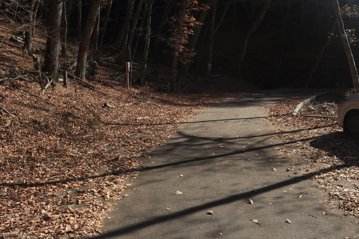 林道の終点は駐車場になっていますが、駐車している車はありませんでした。 Canon EOS Kiss X7 EF-S24mm f/2.8 STM 24mm(38mm) ISO 100 F5.6 1/125s |
