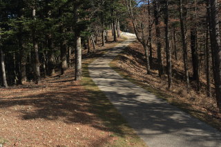 しばらくは、緩やかな林道(車道)を上って行きます。 緩やかとは言っても車道としてはとても急(地図で算出すると、およそ 20% の坂)です。 Canon EOS Kiss X7 EF-S24mm f/2.8 STM 24mm(38mm) ISO 200 F5.6 1/80s |