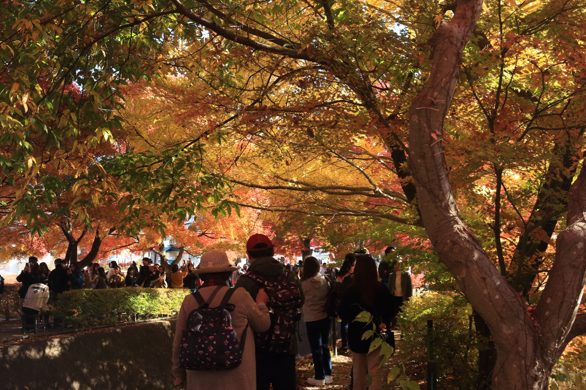 カエデの並木が見事に紅くなっています。 Canon EOS Kiss X7 EF-S24mm f/2.8 STM 24mm(38mm) ISO 100 F6.3 1/160s |