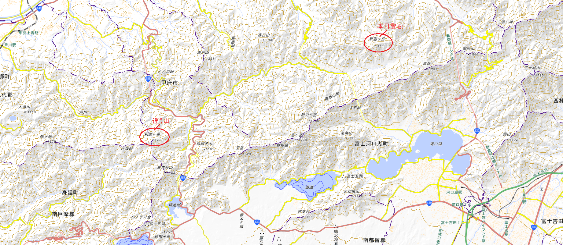 山梨県の釈迦ヶ岳は2座ありますが、笛吹市のほうの釈迦ヶ岳に登ります。