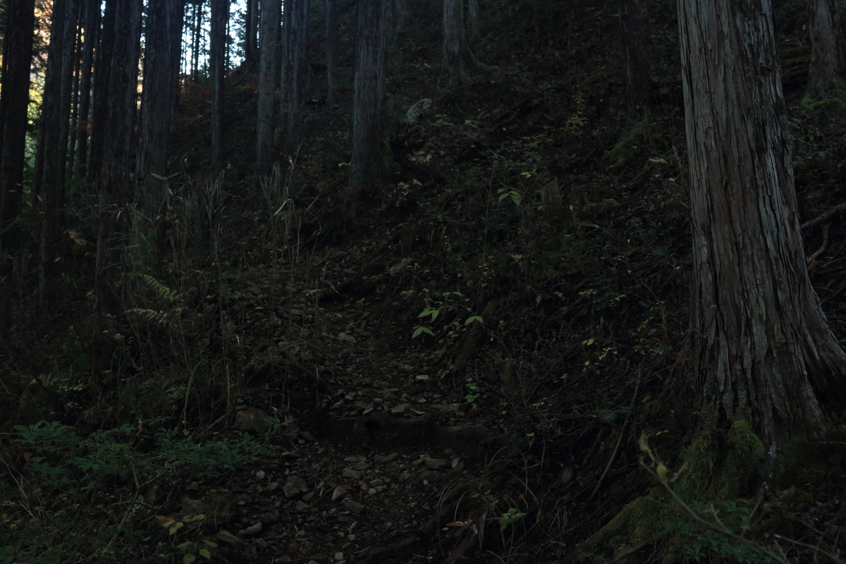 橋を渡り終えると、暗い九十九折の急登になります。どんどん上ります。 Canon EOS Kiss X7 EF-S24mm f/2.8 STM 24mm(38mm) ISO 1600 F5.6 1/80s |