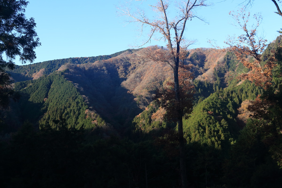 ある程度登ると、さっき渡った川の彼岸にある尾根が良く見えました。 Canon EOS Kiss X7 EF-S24mm f/2.8 STM 24mm(38mm) ISO 100 F5.6 1/125s |