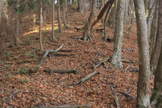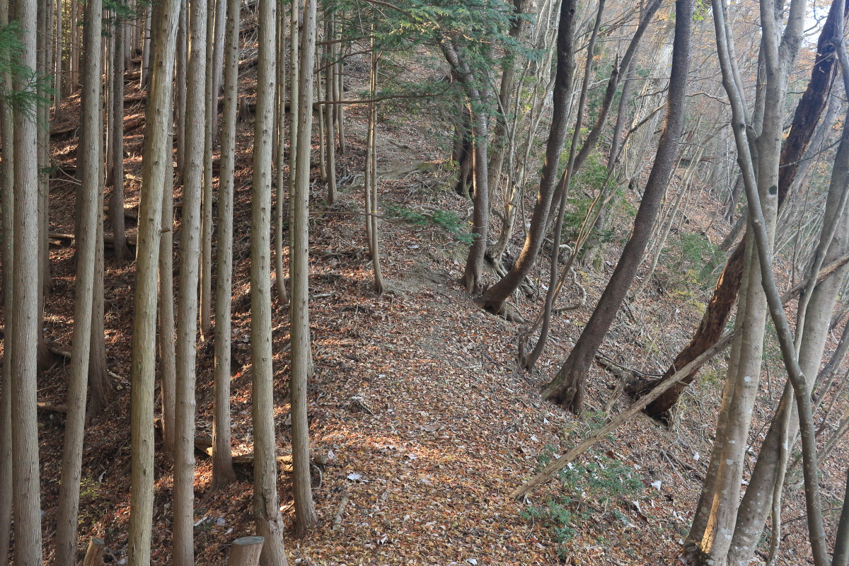 小仏峠通過(12:09)。枯葉がいっぱい。 Canon EOS Kiss X7 EF-S24mm f/2.8 STM 24mm(38mm) ISO 200 F5.6 1/80s |