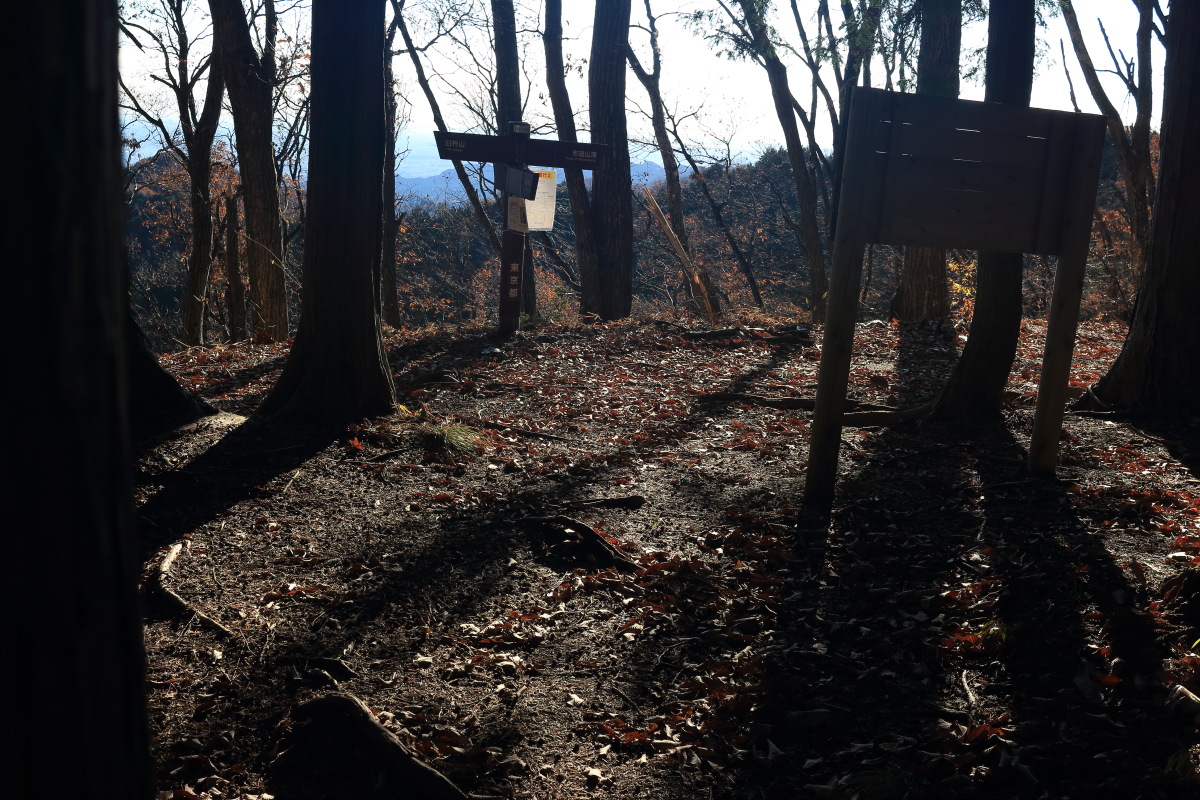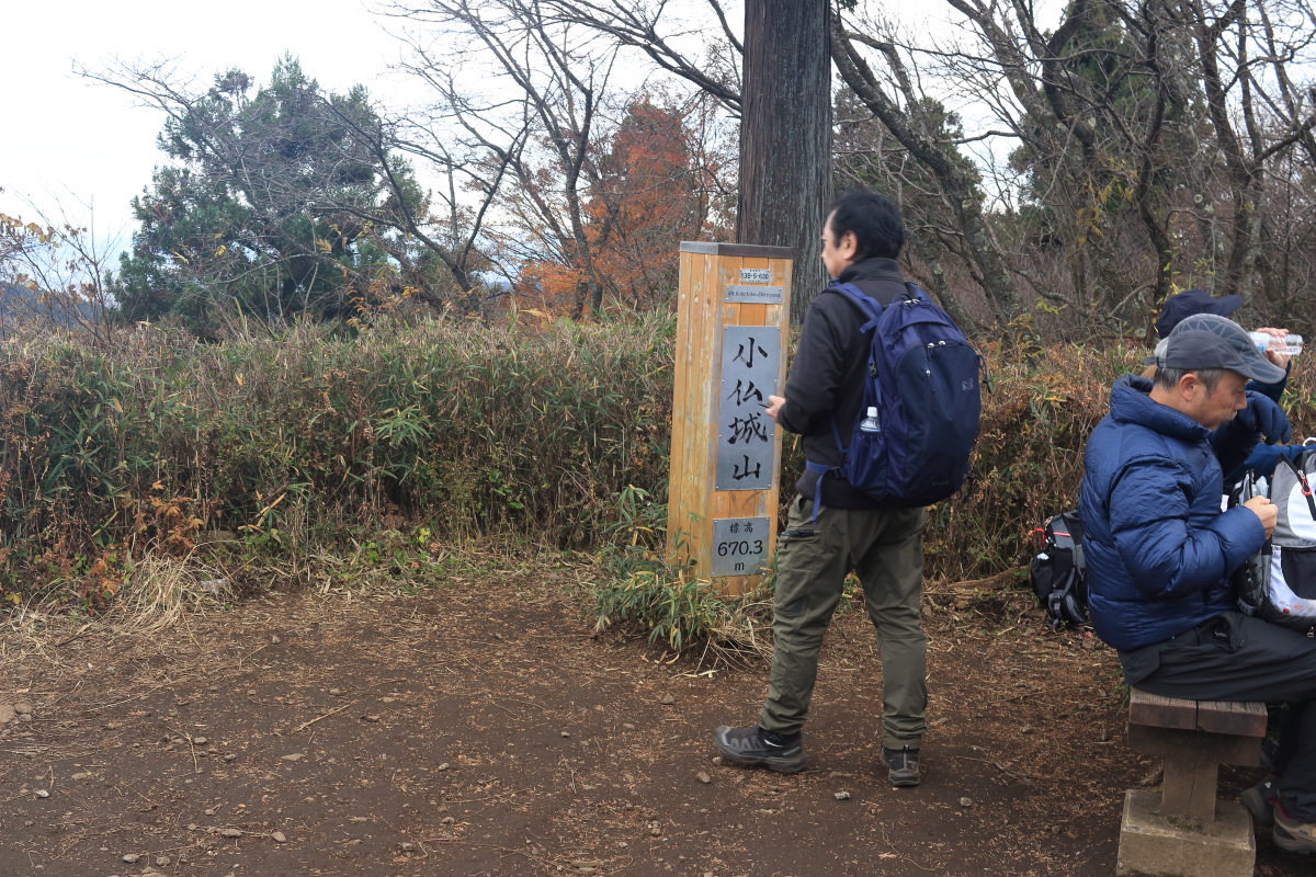 小仏城山(670m)到着(12:21)。山頂標はこちら。 Canon EOS Kiss X7 EF-S24mm f/2.8 STM 24mm(38mm) ISO 100 F5.6 1/80s |