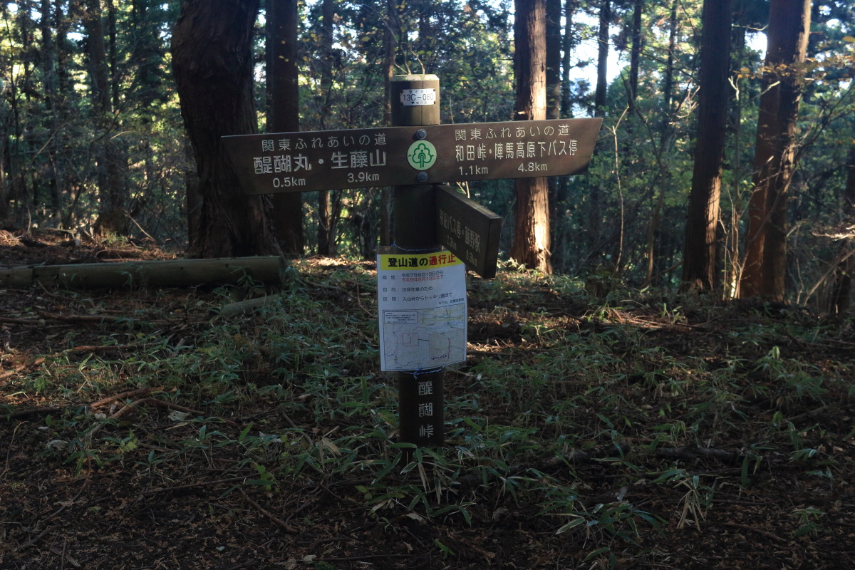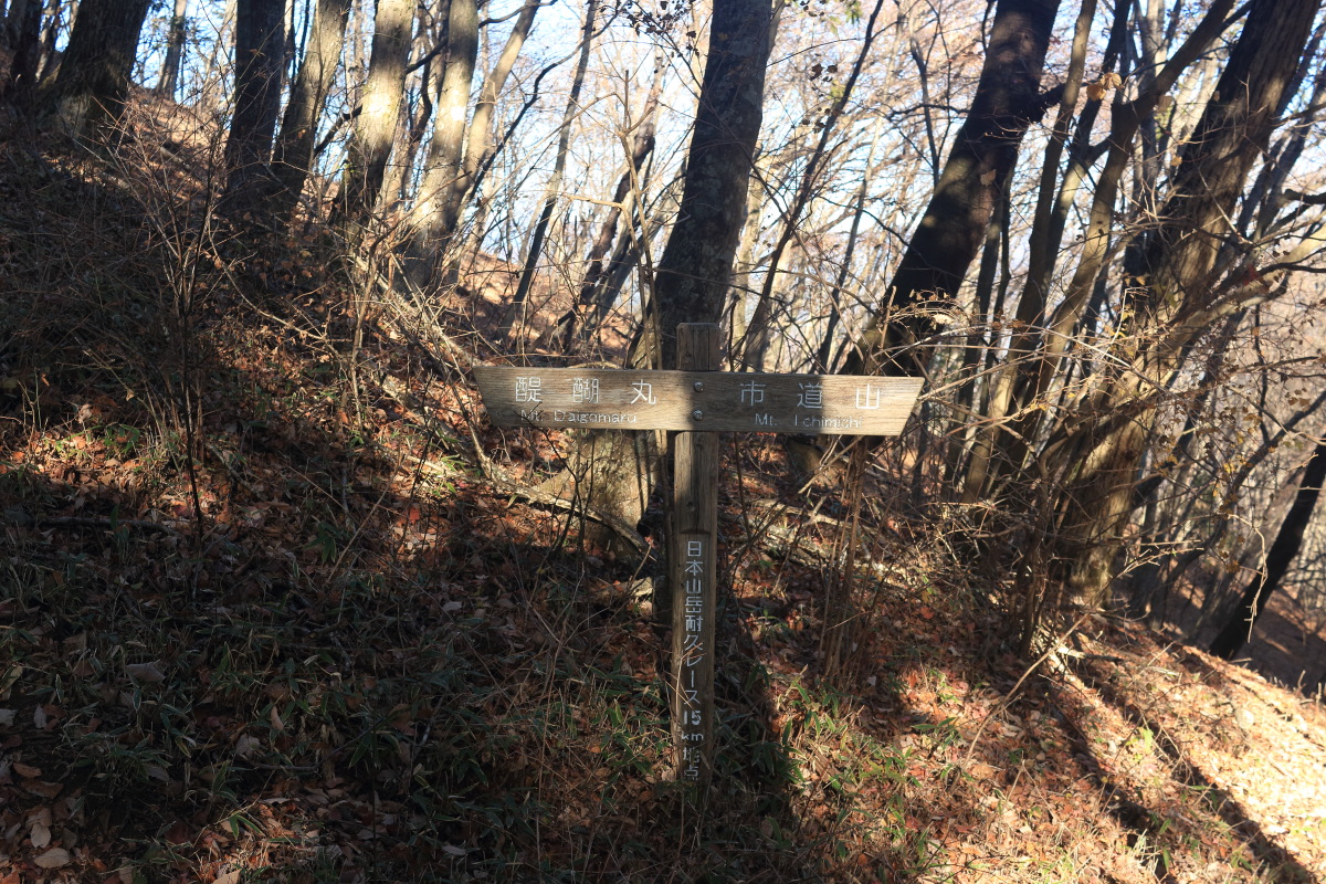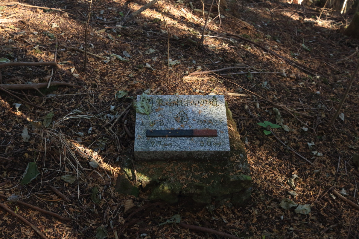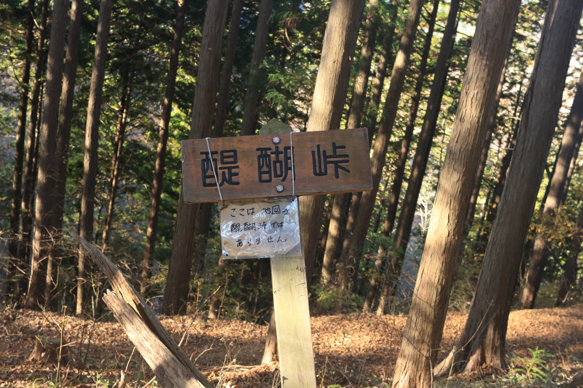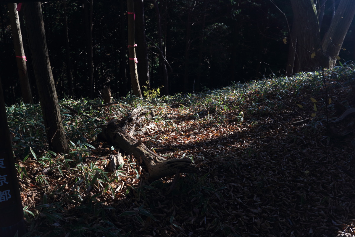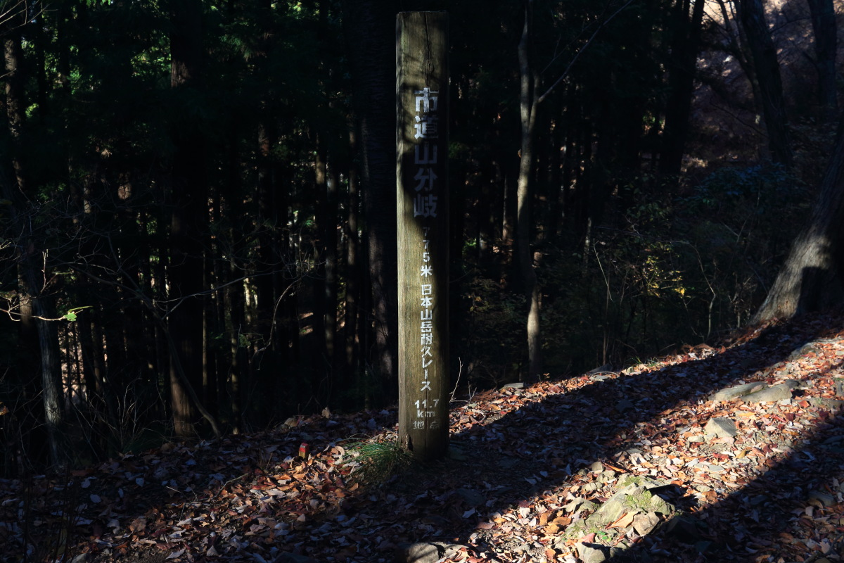 醍醐峠通過(9:45)。峠標兼道標はこちら。 Canon EOS Kiss X7 EF-S24mm f/2.8 STM 24mm(38mm) ISO 1600 F5.6 1/80s |