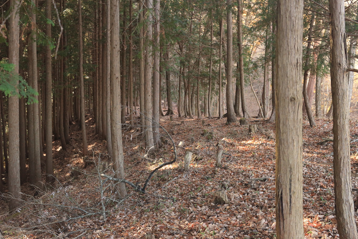 臼杵山から市道山に連なる尾根が近づいてきましたが、まだそこそこ離れています。 あの尾根と合流してすぐに市道山があります。 Canon EOS Kiss X7 EF-S24mm f/2.8 STM 24mm(38mm) ISO 320 F5.6 1/80s |
