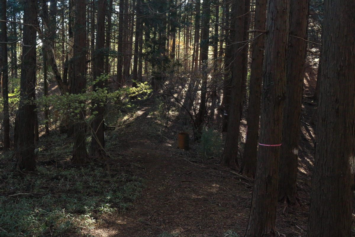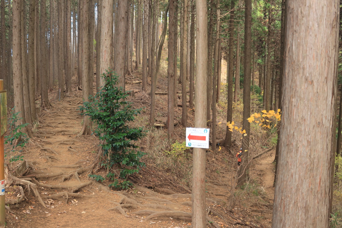 途中から人工林になります。どんどん進みます。 ハセツネ15km地点の道標 がありました。 Canon EOS Kiss X7 EF-S24mm f/2.8 STM 24mm(38mm) ISO 800 F5.6 1/60s |