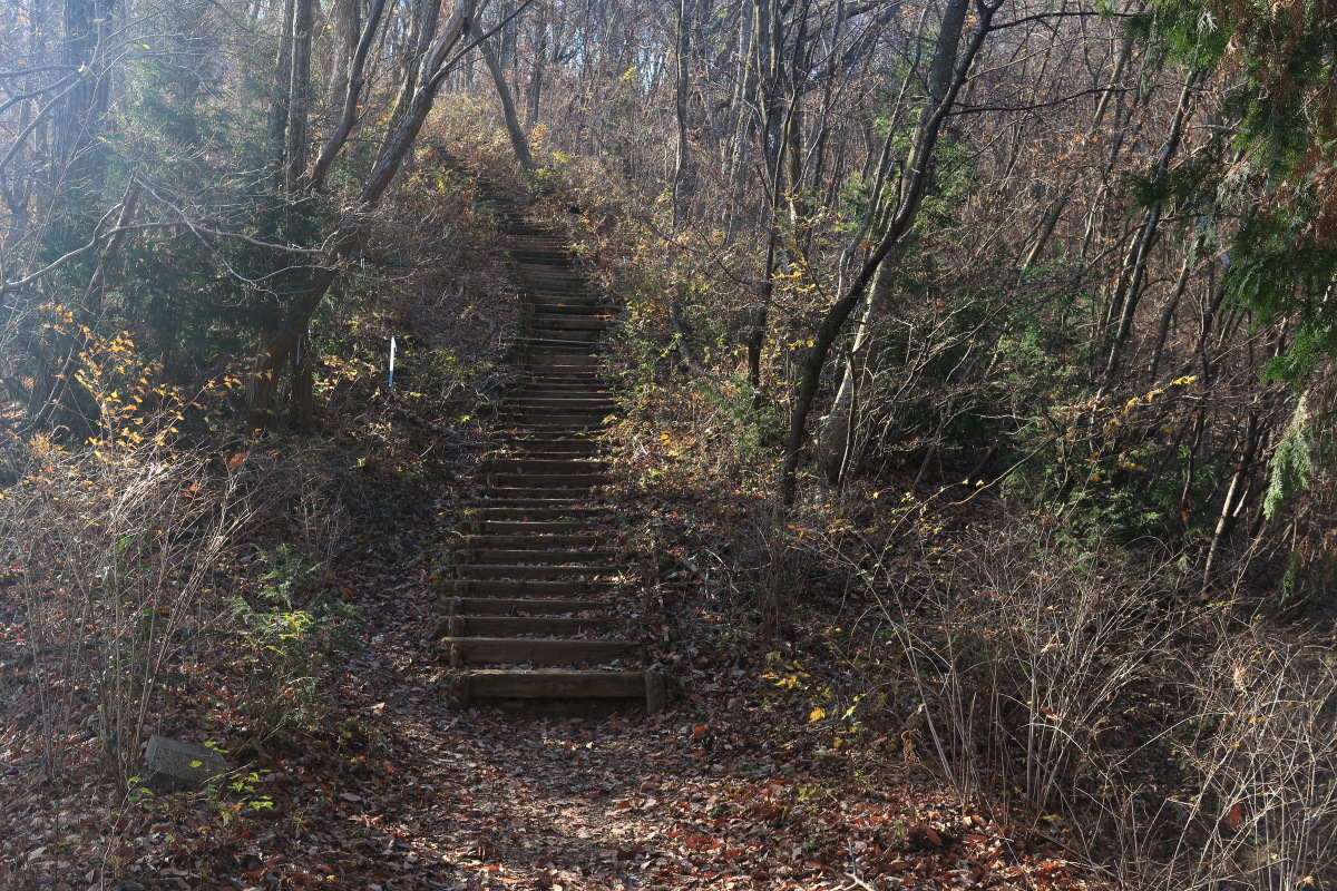 すぐに陣馬山に向けて長い階段を上ります。 Canon EOS Kiss X7 EF-S24mm f/2.8 STM 24mm(38mm) ISO 800 F5.6 1/80s |