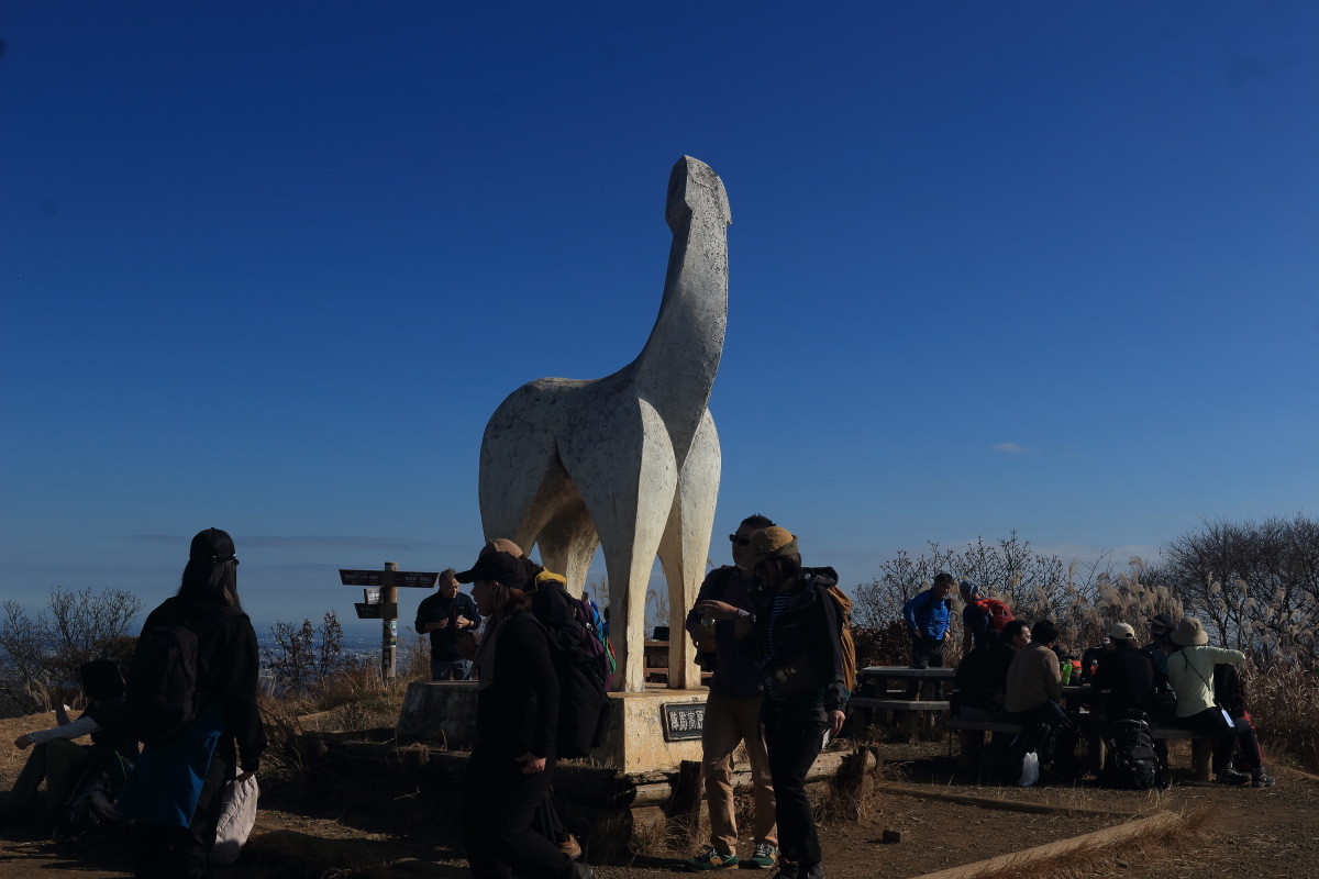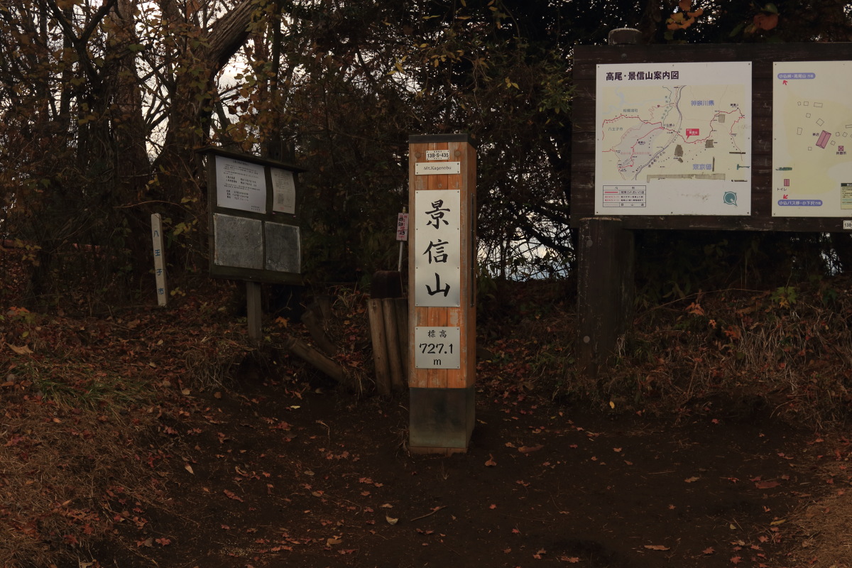 景信山(727m)到着(11:51)。山頂標はこちら。 すごい人の数でした。 Canon EOS Kiss X7 EF-S24mm f/2.8 STM 24mm(38mm) ISO 100 F5.6 1/125s |