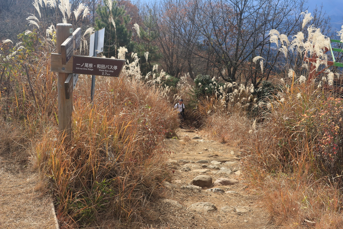 吊尾根への分岐につきました(8:39)。 分岐にある、ハセツネの道標はこちら。 Canon EOS Kiss X7 EF-S24mm f/2.8 STM 24mm(38mm) ISO 500 F5.6 1/80s |
