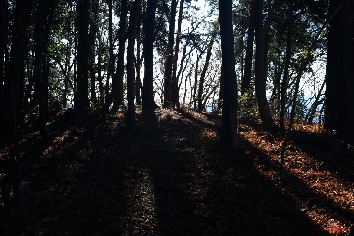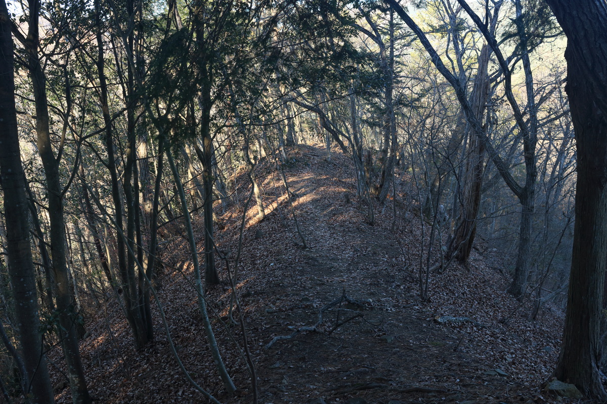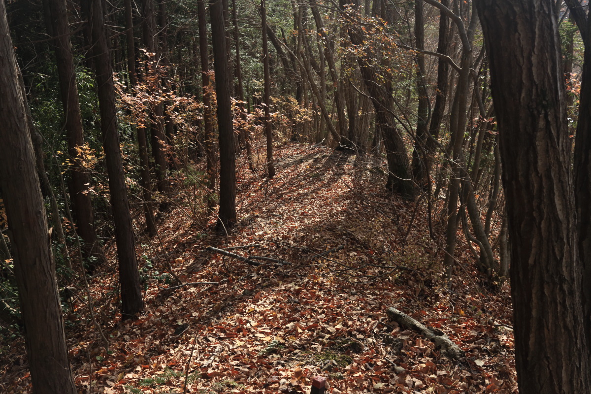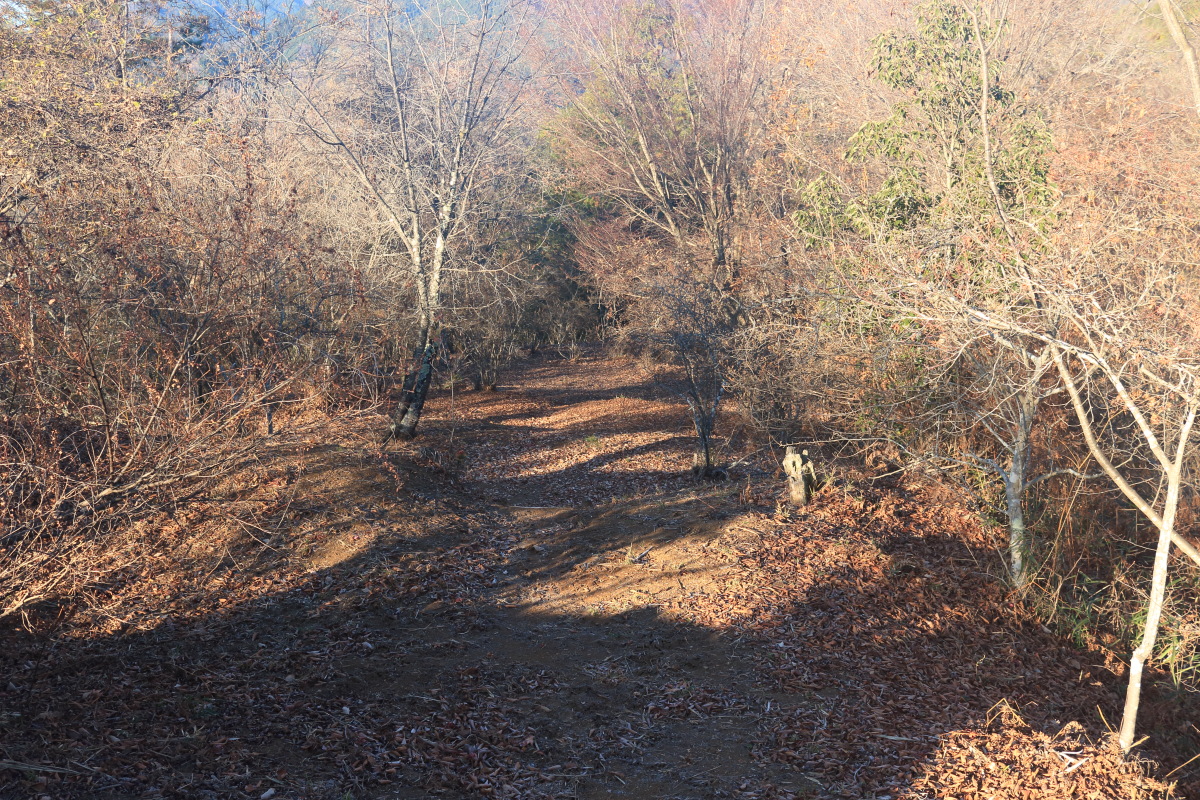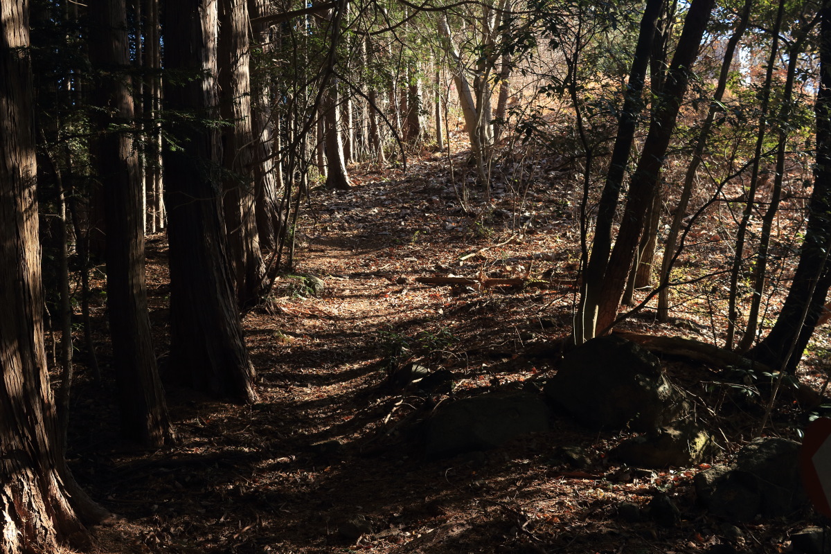 東側登山道も、急登。枯葉が降り積もっているので、よく滑ります。 Canon EOS Kiss X7 EF-S24mm f/2.8 STM 24mm(38mm) ISO 160 F5.6 1/80s |