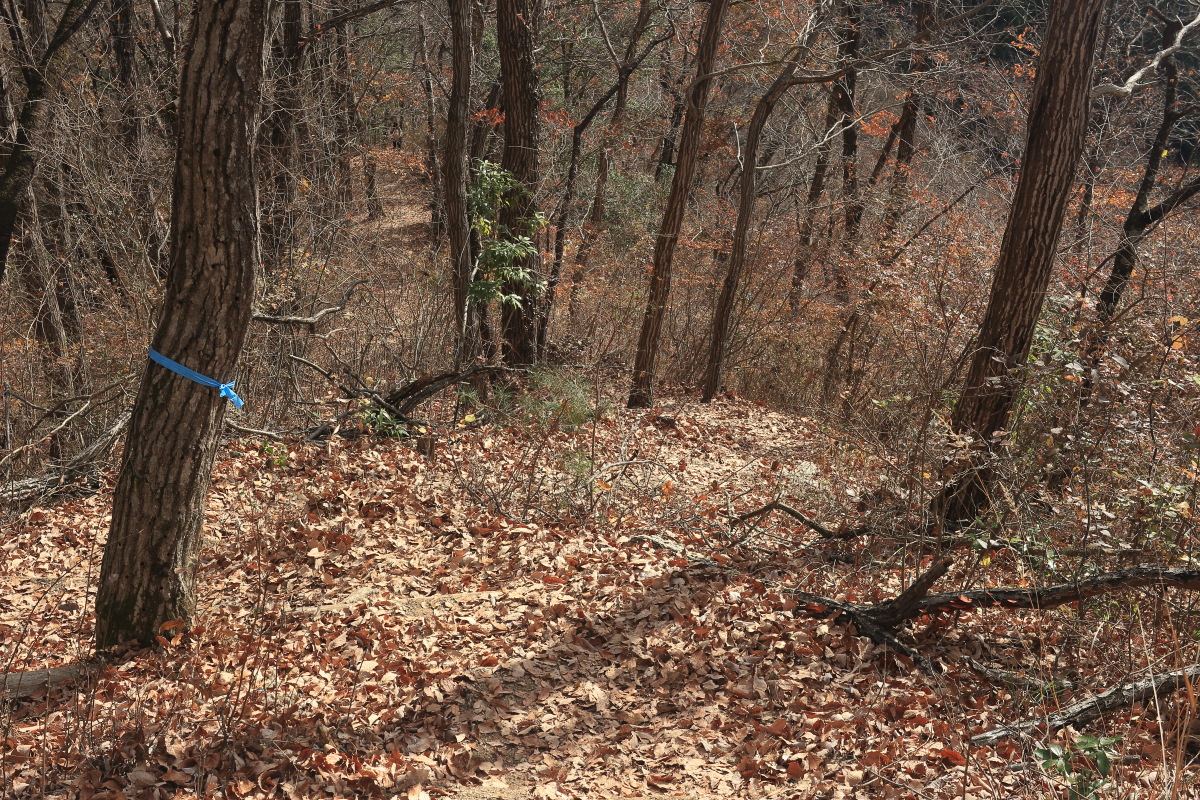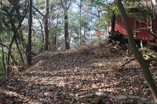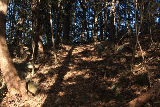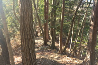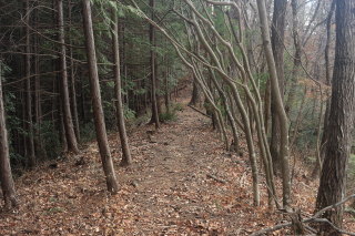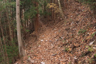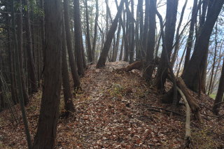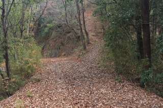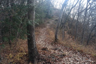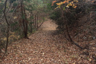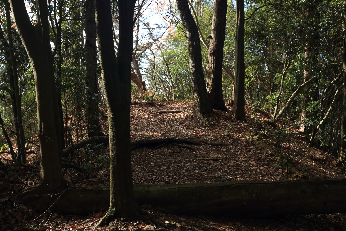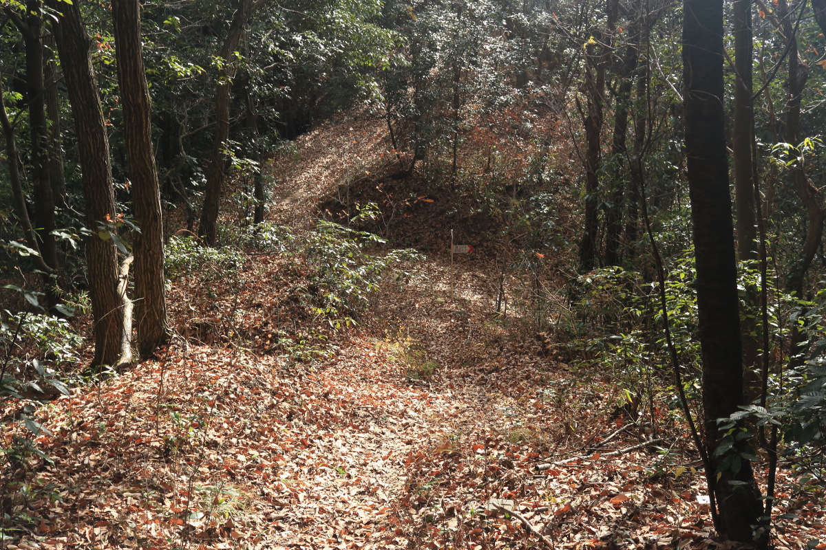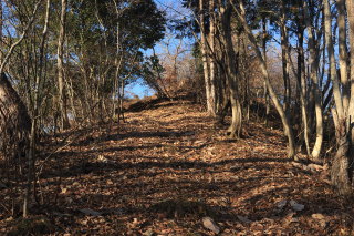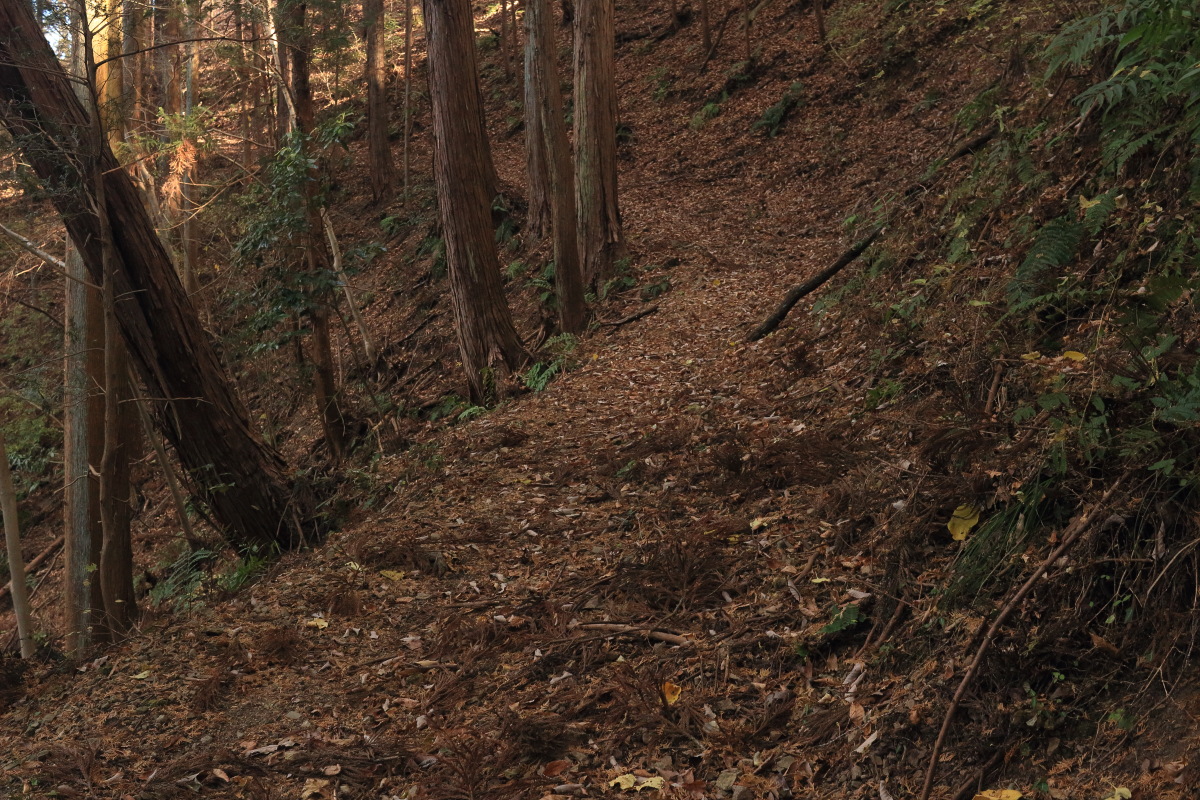 東側登山道も、急登。枯葉が降り積もっているので、よく滑ります。 Canon EOS Kiss X7 EF-S24mm f/2.8 STM 24mm(38mm) ISO 160 F5.6 1/80s |
