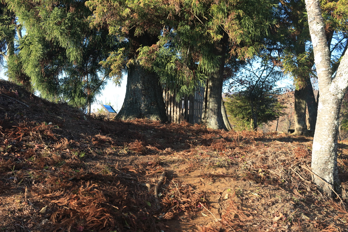 ここから左に入るのかと思ったら、墓場でウロウロ見て周りましたが山頂に向かうルートは見つかりませんでした。 もう少し(10mぐらい)先から左に入るのが正解でした。 Canon EOS Kiss X7 EF-S24mm f/2.8 STM 24mm(38mm) ISO 100 F5.0 1/100s |