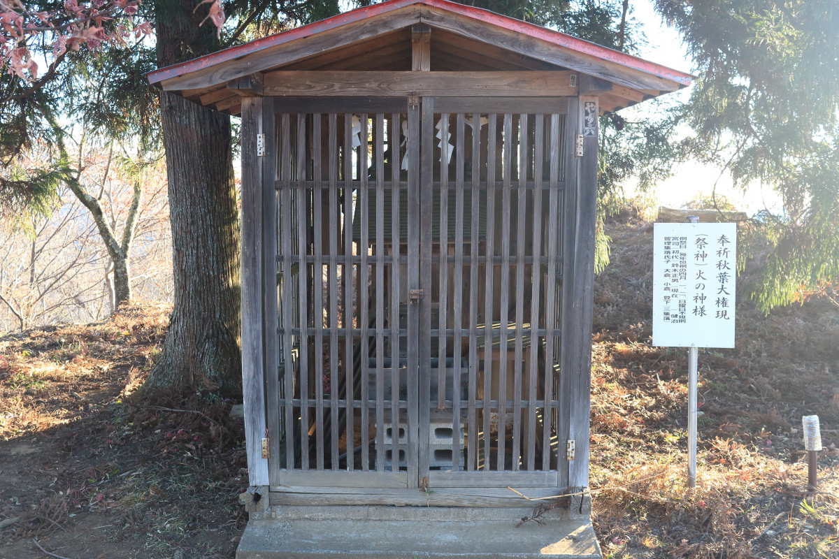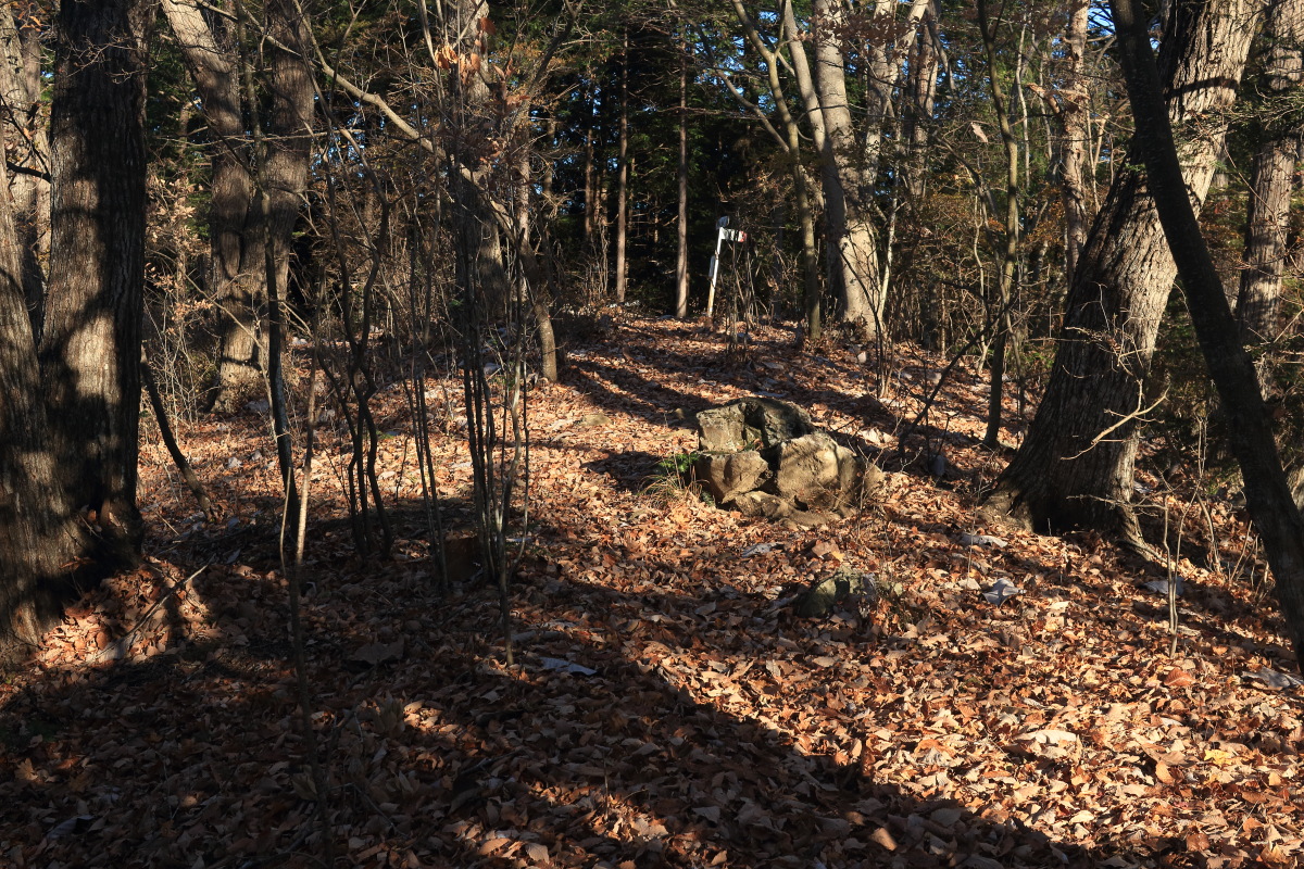 秋葉山(391m)到着(12:04)。山頂標は左に写っています。 Canon EOS Kiss X7 EF-S24mm f/2.8 STM 24mm(38mm) ISO 100 F5.6 1/100s |