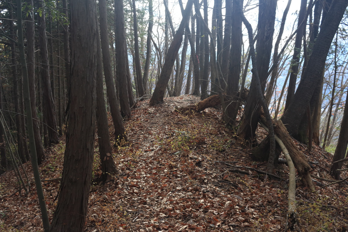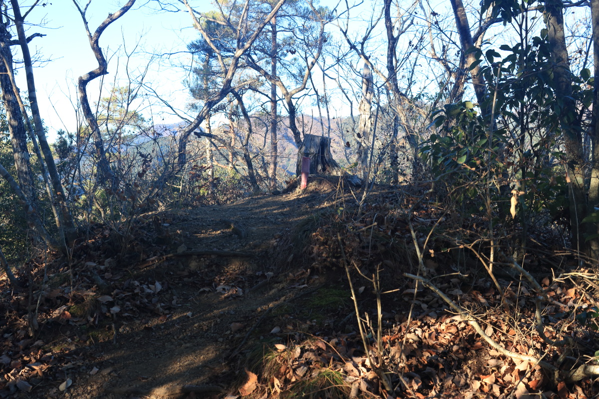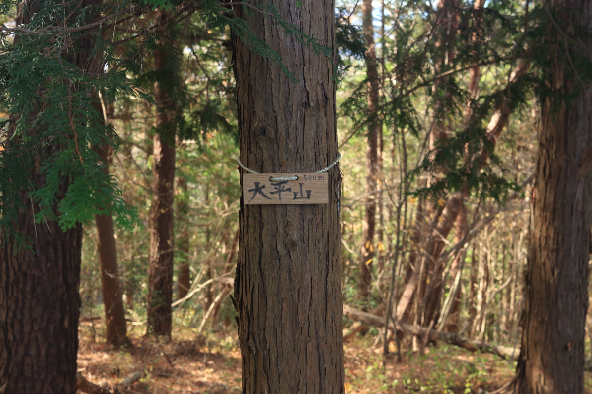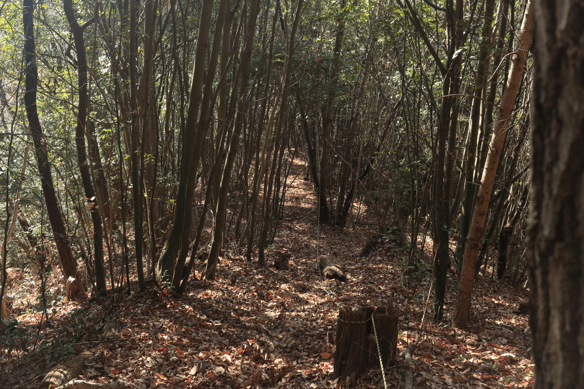 尾根に出ました。小ピーク通過。 大平山(500m)だそうです。 Canon EOS Kiss X7 EF-S24mm f/2.8 STM 24mm(38mm) ISO 500 F5.6 1/80s |