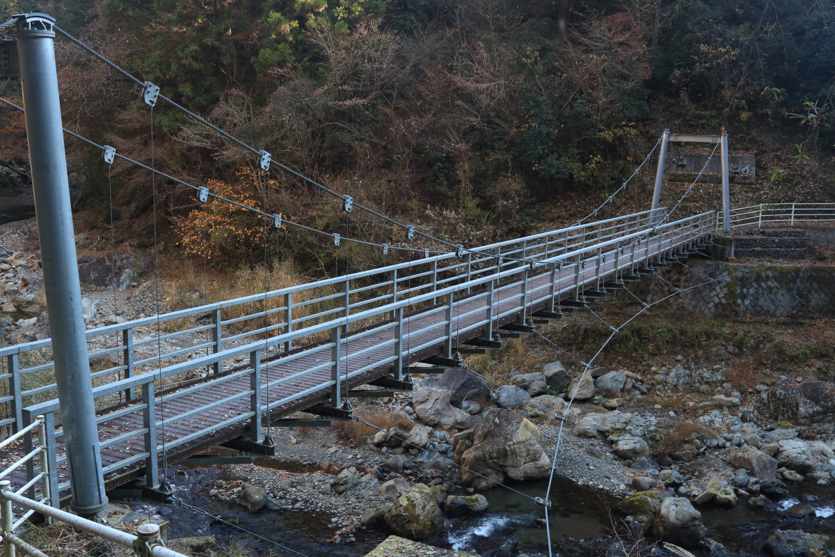立派なつり橋がありました。鶴川の左岸に渡ります。 Canon EOS Kiss X7 EF-S24mm f/2.8 STM 24mm(38mm) ISO 400 F5.6 1/80s |