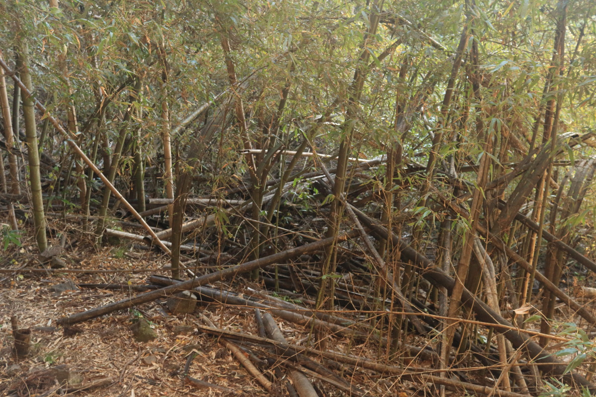 途中に大量の竹の倒木(倒竹?)がありました。 鋸っぽい切り口だったので、理由はわかりませんが、人為的なものだと思われます。 Canon EOS Kiss X7 EF-S24mm f/2.8 STM 24mm(38mm) ISO 1600 F5.6 1/80s |