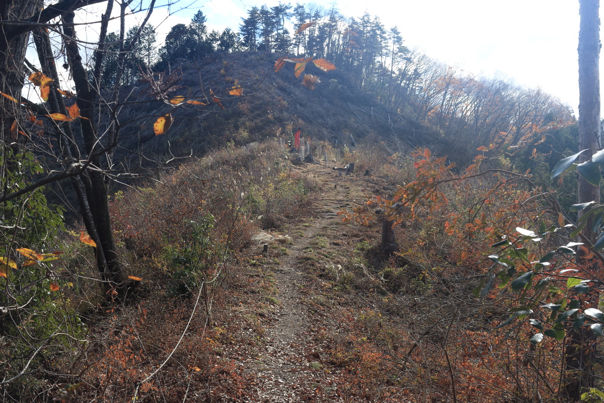 山頂に向けて尾根伝いに緩やかな坂を上ります。 Canon EOS Kiss X7 EF-S24mm f/2.8 STM 24mm(38mm) ISO 100 F4.5 1/100s |