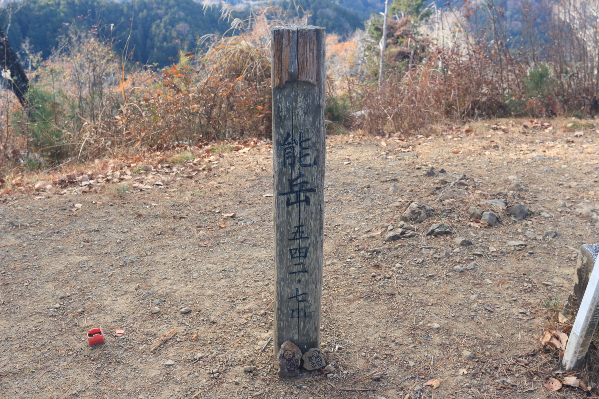 能岳(542m)登頂(10:39)。山頂標はこちら。 Canon EOS Kiss X7 EF-S24mm f/2.8 STM 24mm(38mm) ISO 100 F6.3 1/160s |