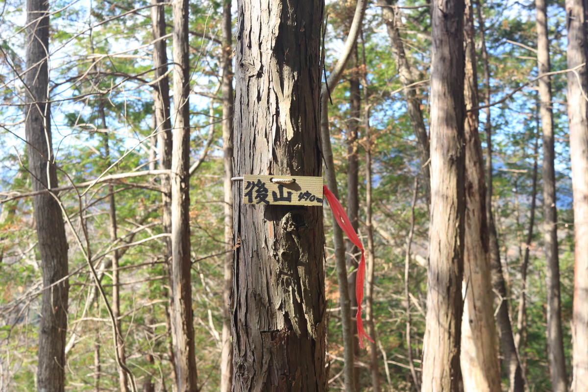 すぐに次の後山(470m)通過(11:02)。 山頂名はこちら。 眺望なし。 Canon EOS Kiss X7 EF-S24mm f/2.8 STM 24mm(38mm) ISO 125 F5.6 1/80s |