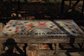 東屋のテーブルです。園児の手作りでしょうか? 癒されます! Canon EOS Kiss X7 EF-S24mm f/2.8 STM 24mm(38mm) ISO 100 F8.0 1/250s |