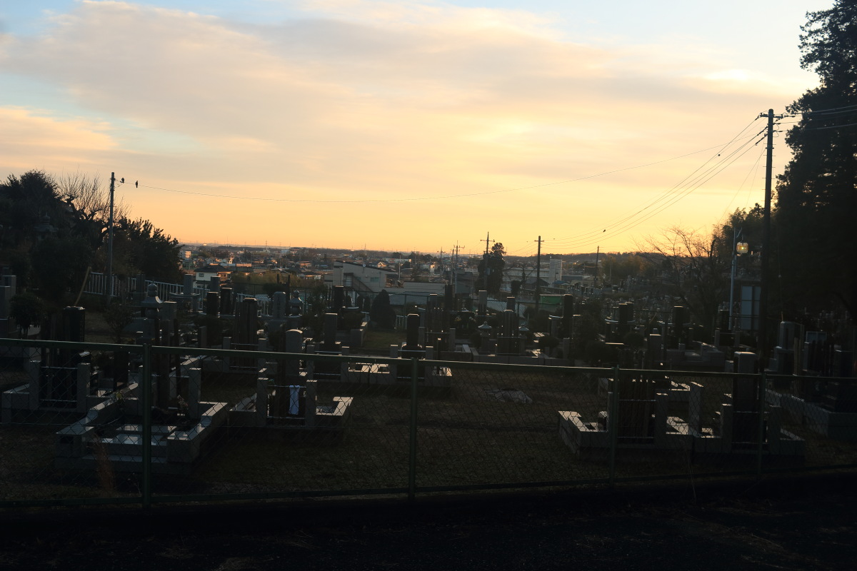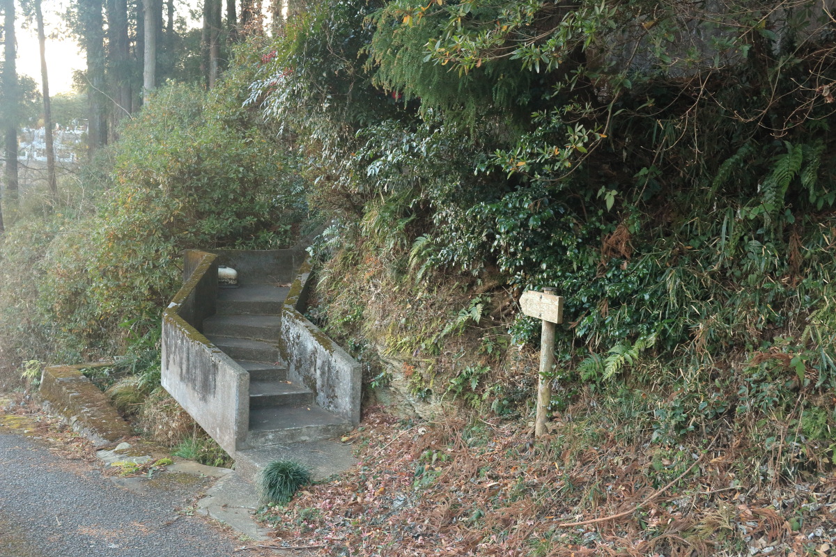 登山口に到着(7:17)。 登山口は墓場でしたが、眺望が良さげでした。 埼玉県の日の出時刻は 6:51(おそらく大宮) なので、まだ陽が出始めた時刻です。 Canon EOS Kiss X7 EF-S24mm f/2.8 STM 24mm(38mm) ISO 100 F5.0 1/125s |