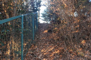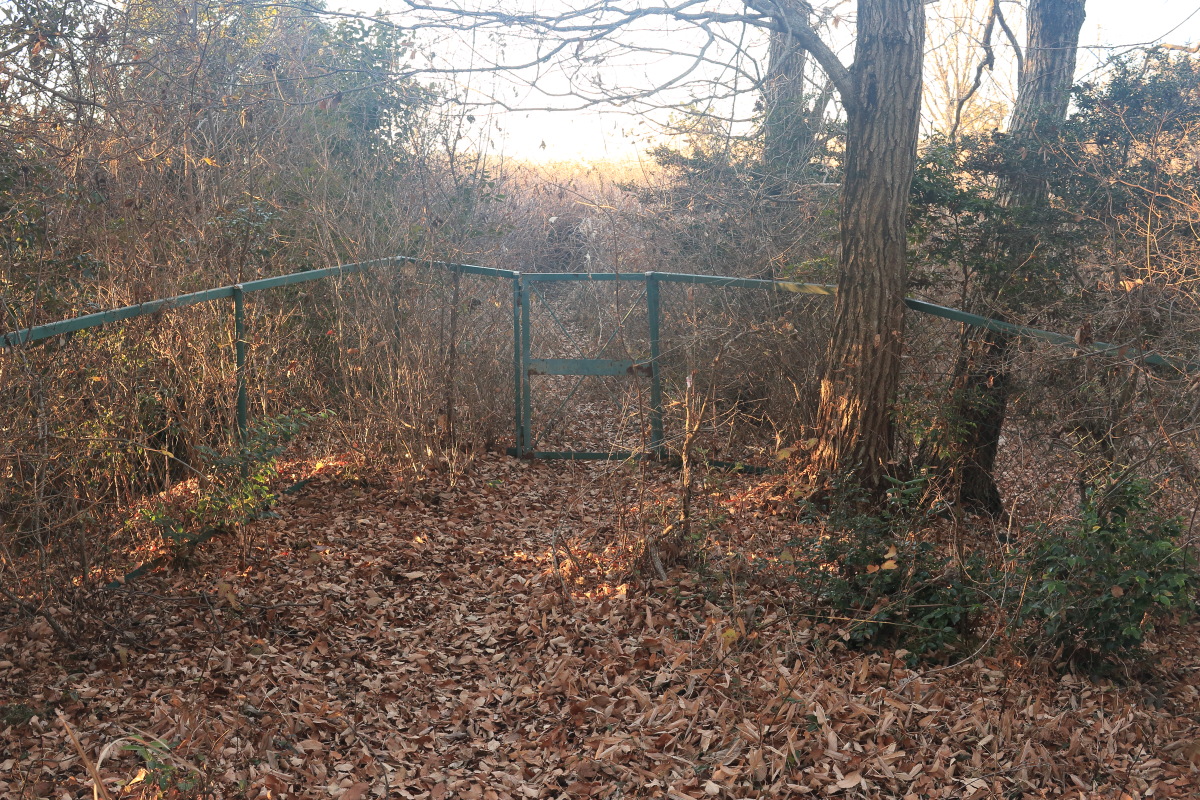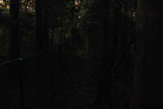 林の中はまだ真っ暗。左(南)にはずっと金網が続いていました。 Canon EOS Kiss X7 EF-S24mm f/2.8 STM 24mm(38mm) ISO 1600 F5.6 1/60s |