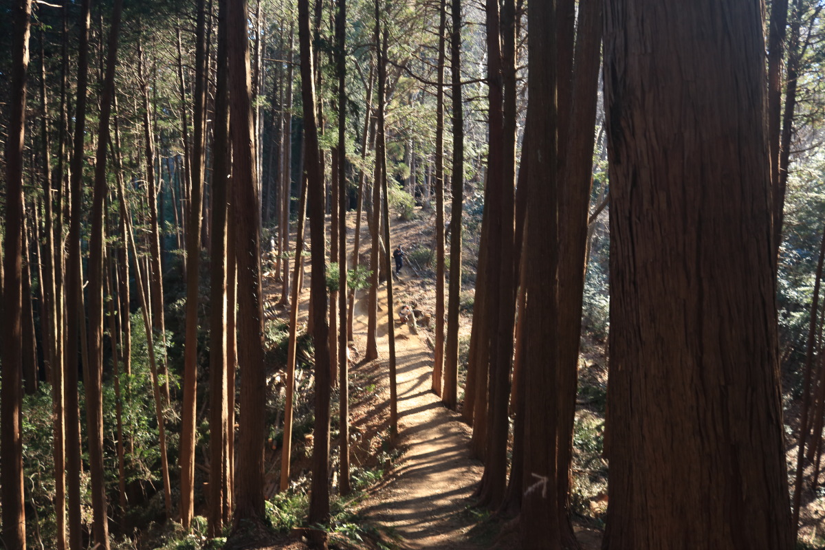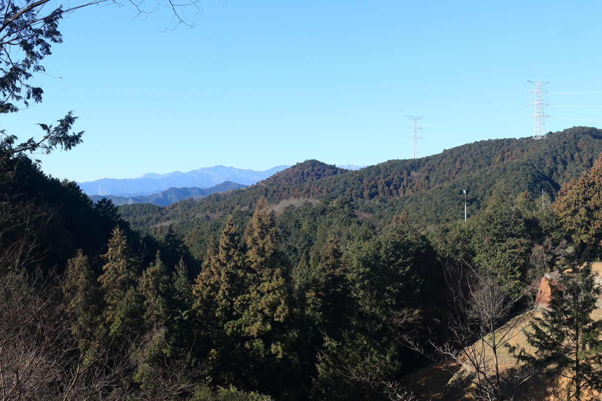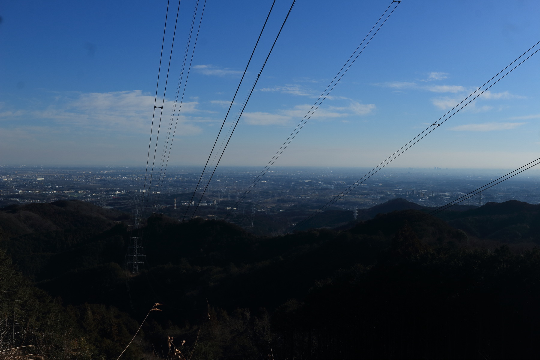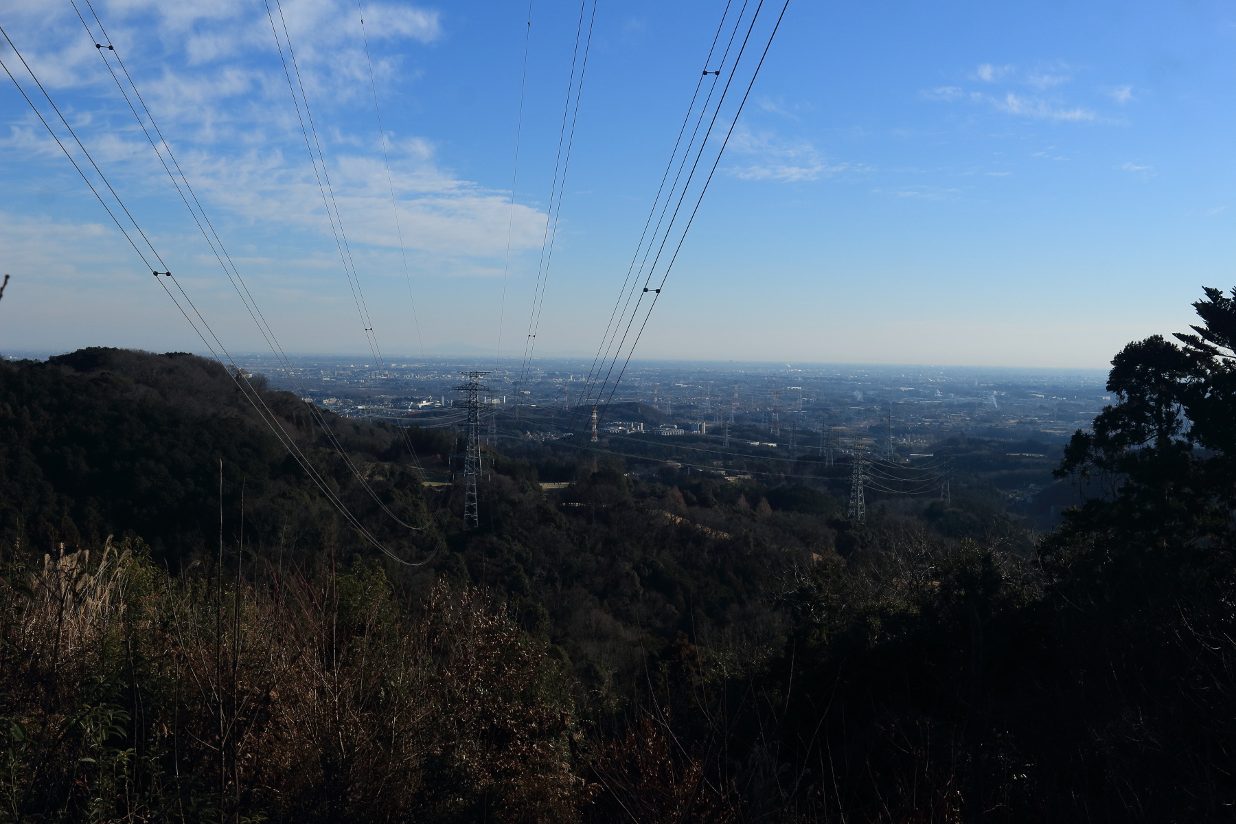 木の隙間から越生方面が見えました。 右側に、さっき登った石尊山が見えています。 Canon EOS Kiss X7 EF-S24mm f/2.8 STM 24mm(38mm) ISO 100 F8.0 1/250s |