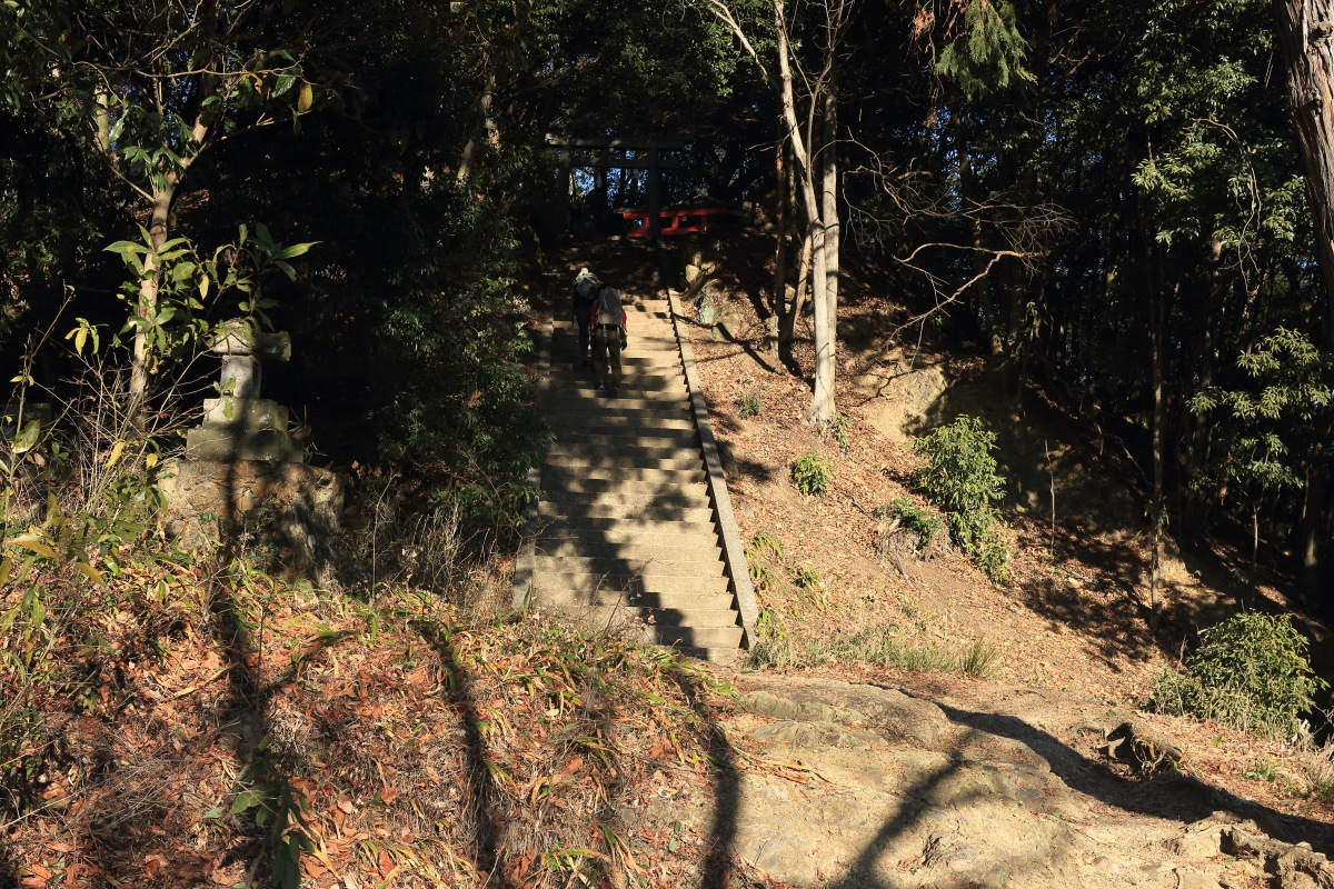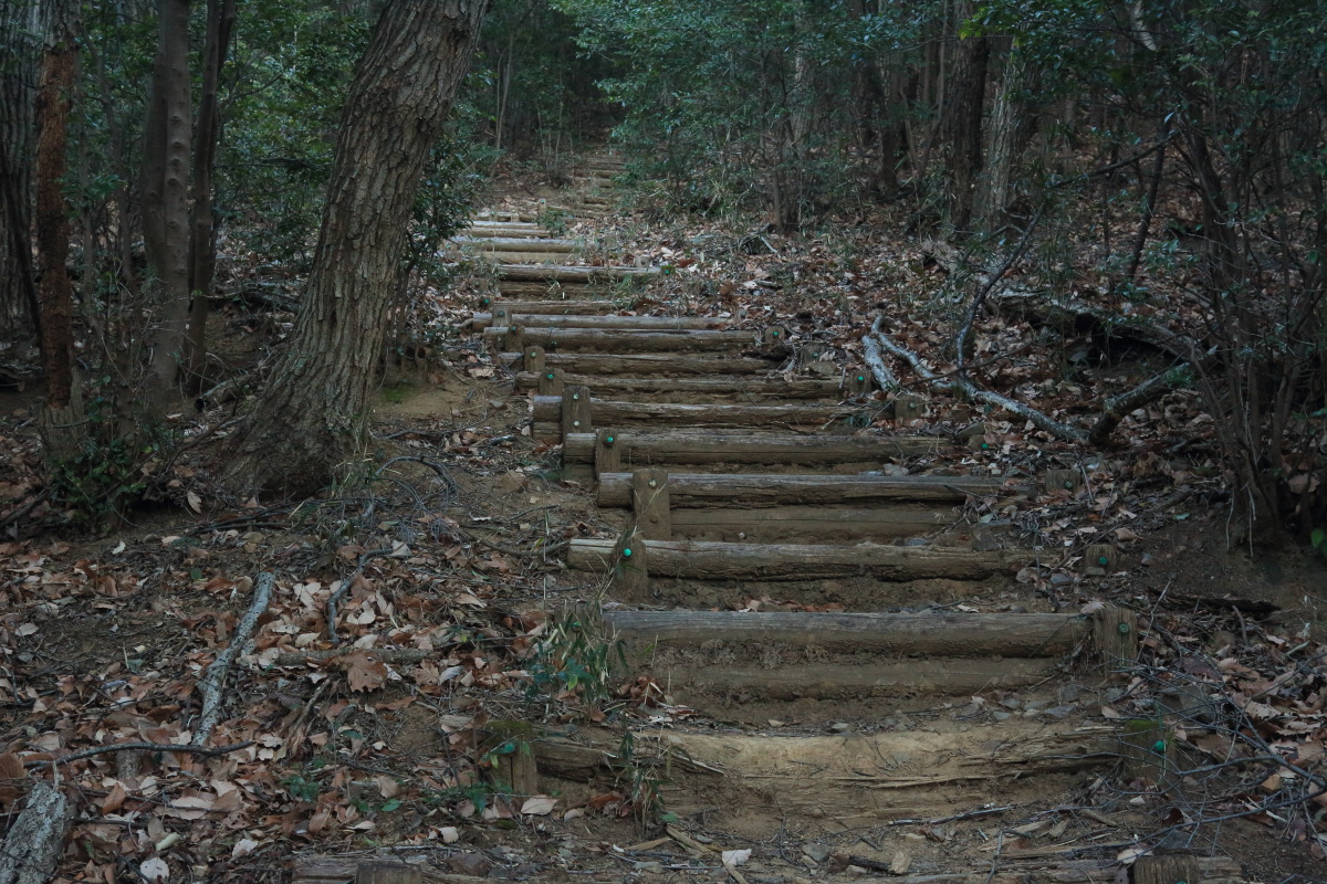途中から急な階段になります。尾根に出る直前まで階段が続きます。 Canon EOS Kiss X7 EF-S24mm f/2.8 STM 24mm(38mm) ISO 1600 F5.6 1/80s |