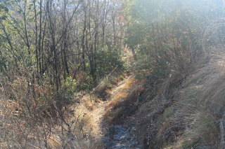 岩々した道を下って行きます。 右に見えている、白い鉄筋コンクリートの辺りまで行きます(9:03)。 Canon EOS Kiss X7 EF-S24mm f/2.8 STM 24mm(38mm) ISO 100 F5.6 1/125s |