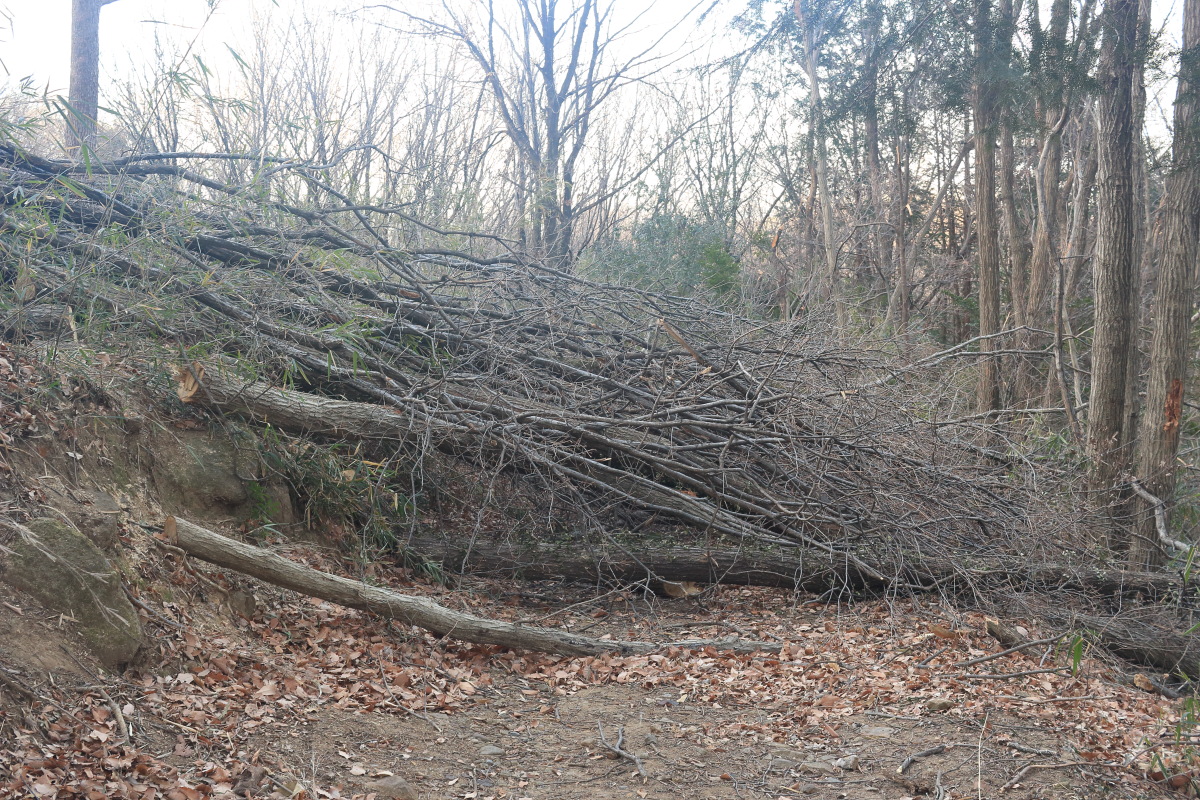 20~30mに渡って、人為的に倒された数十本の木が道をふさいでいました。いやがらせ? Canon EOS Kiss X7 EF-S24mm f/2.8 STM 24mm(38mm) ISO 500 F5.6 1/80s |
