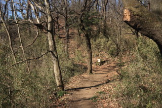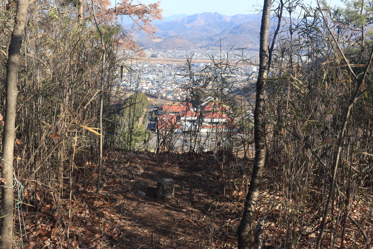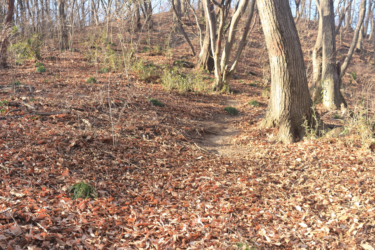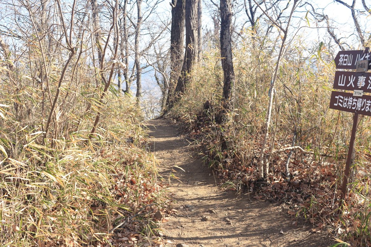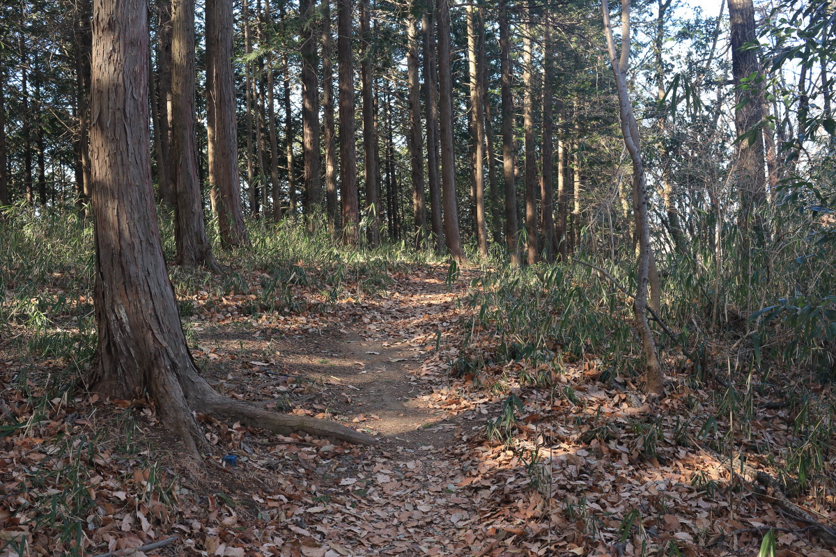 下ってきました(208m)。 左前方に進みたくなりますが、天王山は右上です。 Canon EOS Kiss X7 EF-S24mm f/2.8 STM 24mm(38mm) ISO 100 F4.5 1/80s |